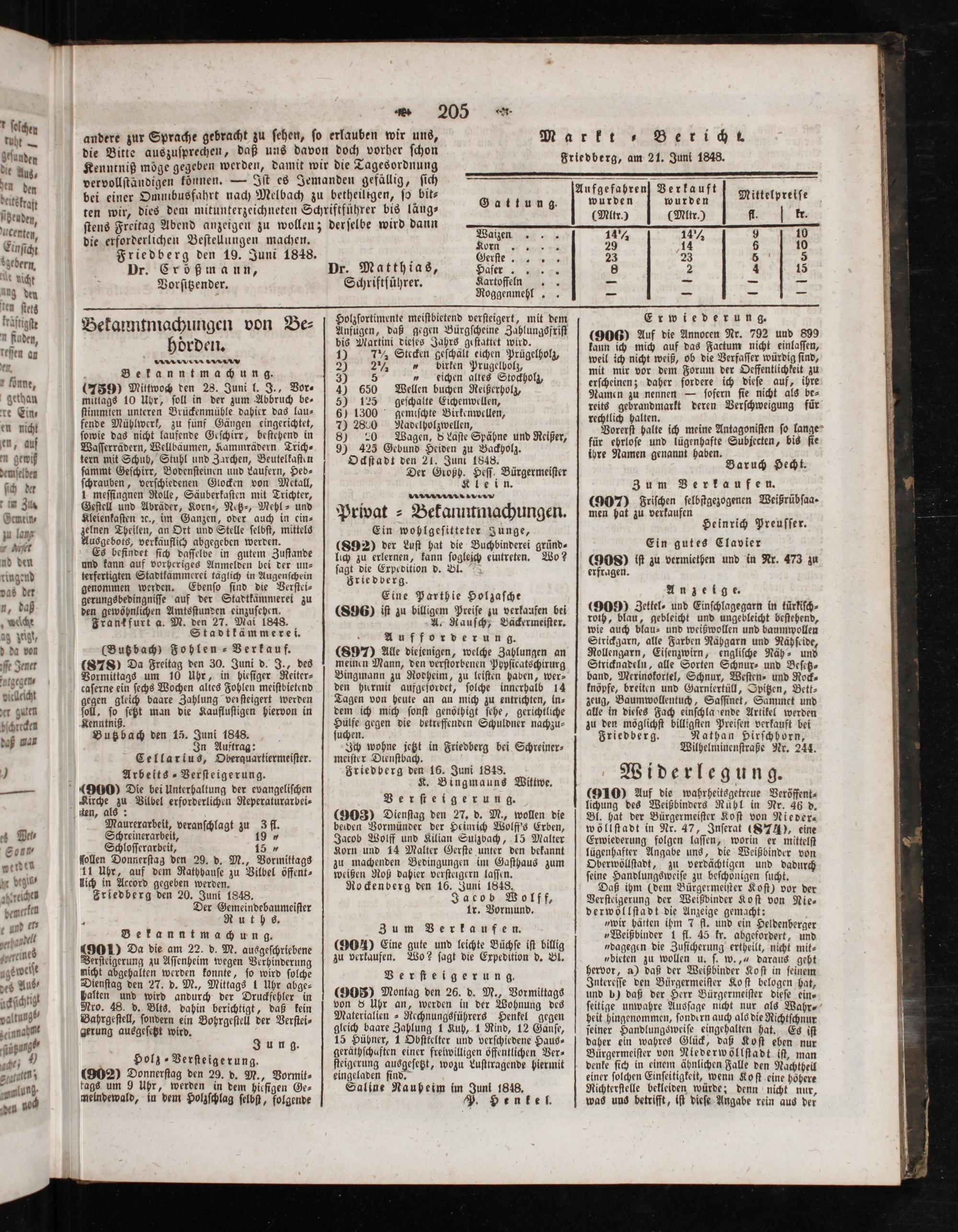 Markt ⸗ Friedberg, am 21. Junt 1848.