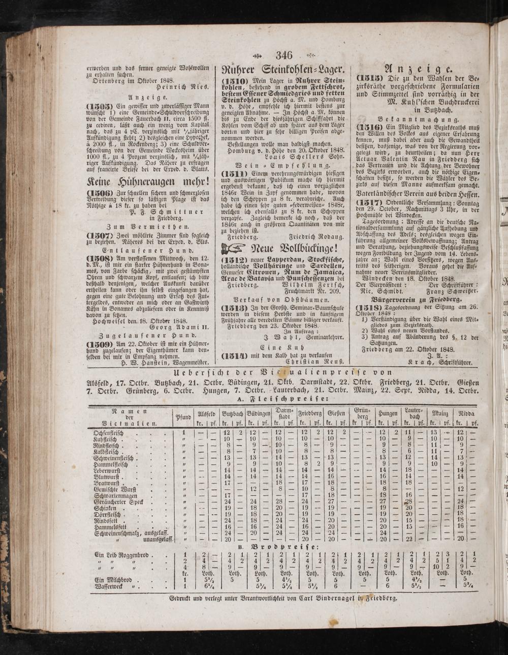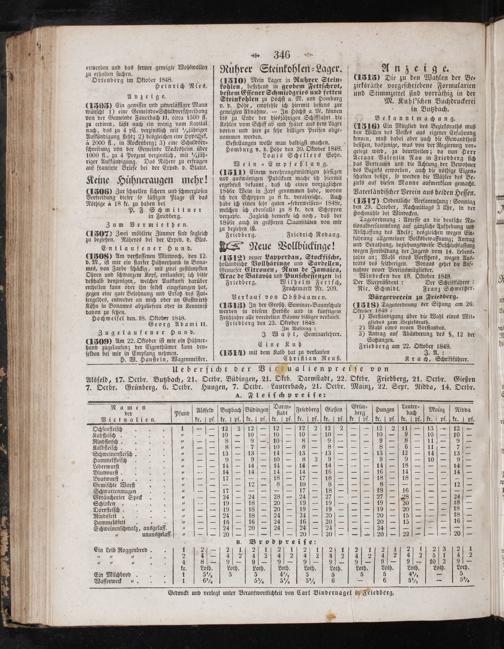 Oktober 1848: 1) Verſtändigung über die Wahl eines Mit⸗ gliedes zum Bezirksrath. 2) Wahl eines neuen Vorſtandes. 3) Antrag auf Abänderung des§. 12 der Satzungen. Friedberg am 22. Oktober 1848.