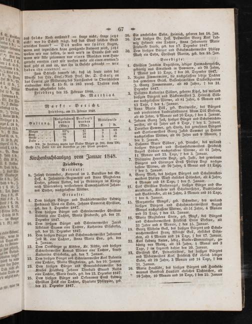 Markt ⸗ Bericht. Friedberg, am 23. Februar 1848.