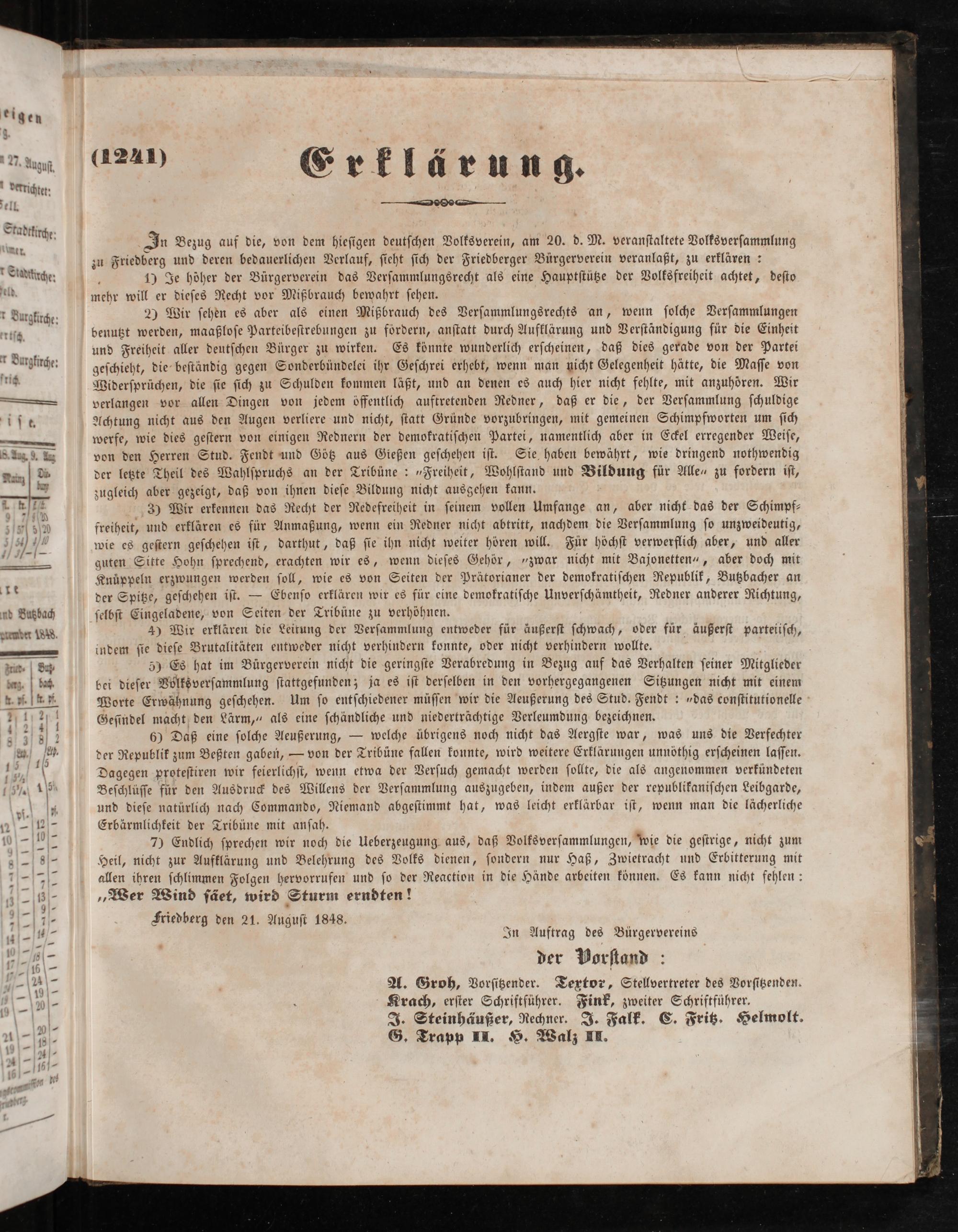 Friedberg den 21. Auguſt 1848.