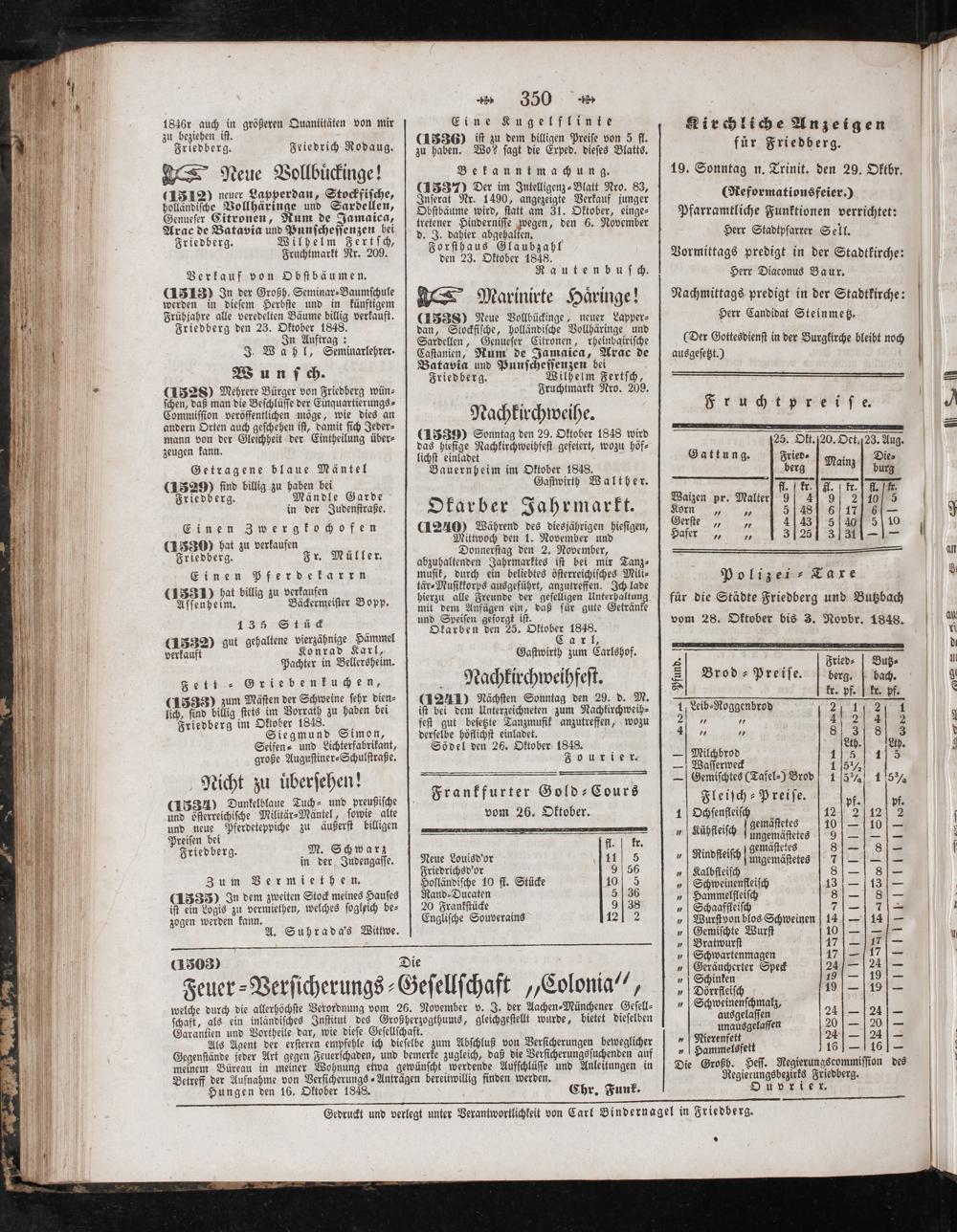 Gedruckt und verlegt unter Verantwortlichkeit von Carl Bindernagel in Friedberg.