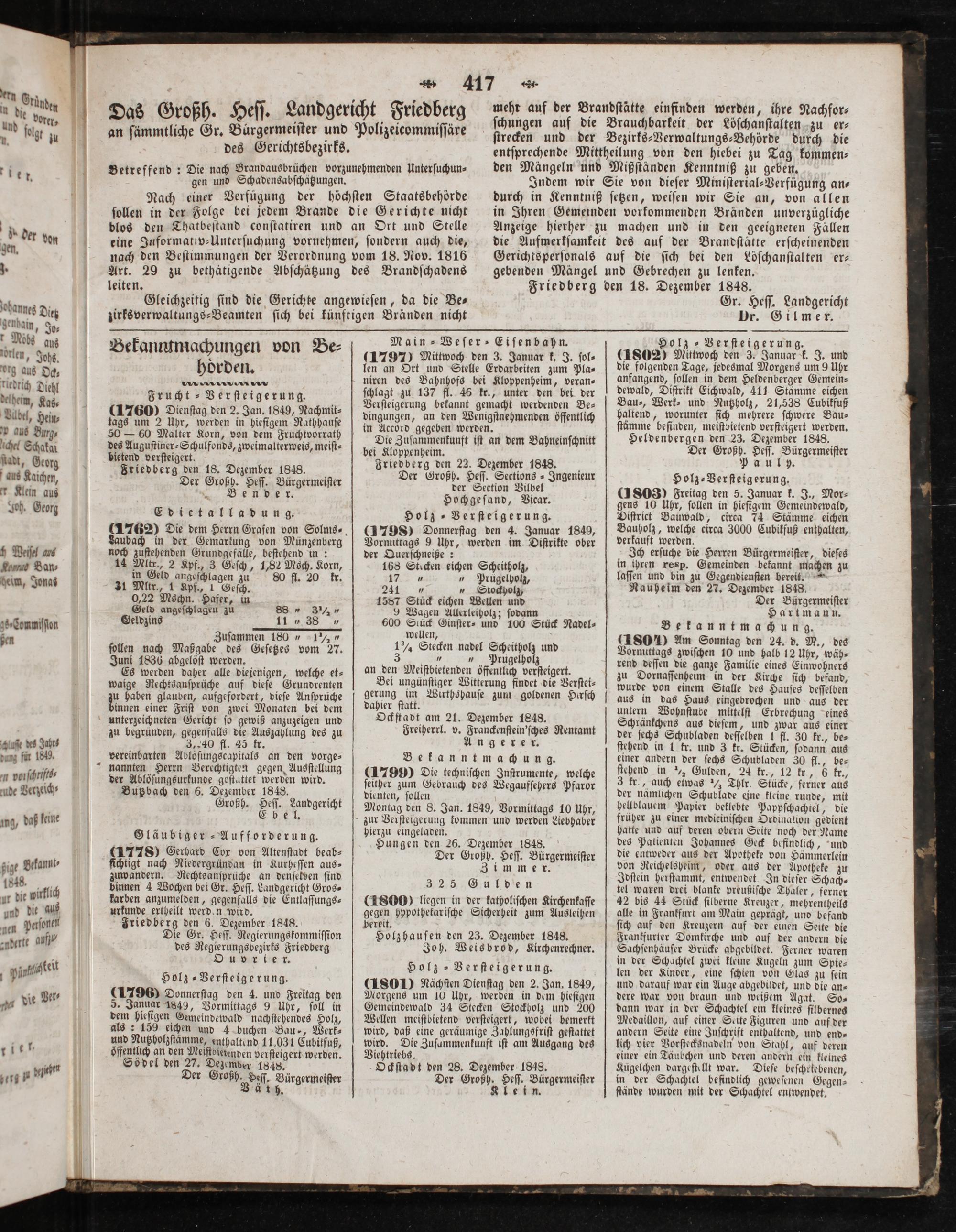 Friedberg den 18. Dezember 1848.