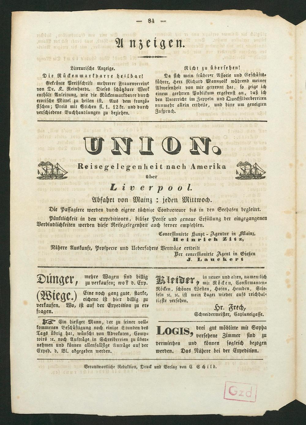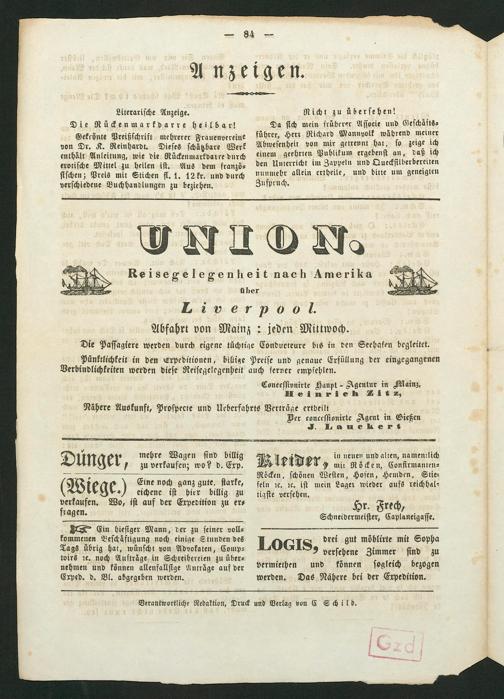 Nähere Auskunft, Prospecte und Ueberfahrts Verträge ertbeilt