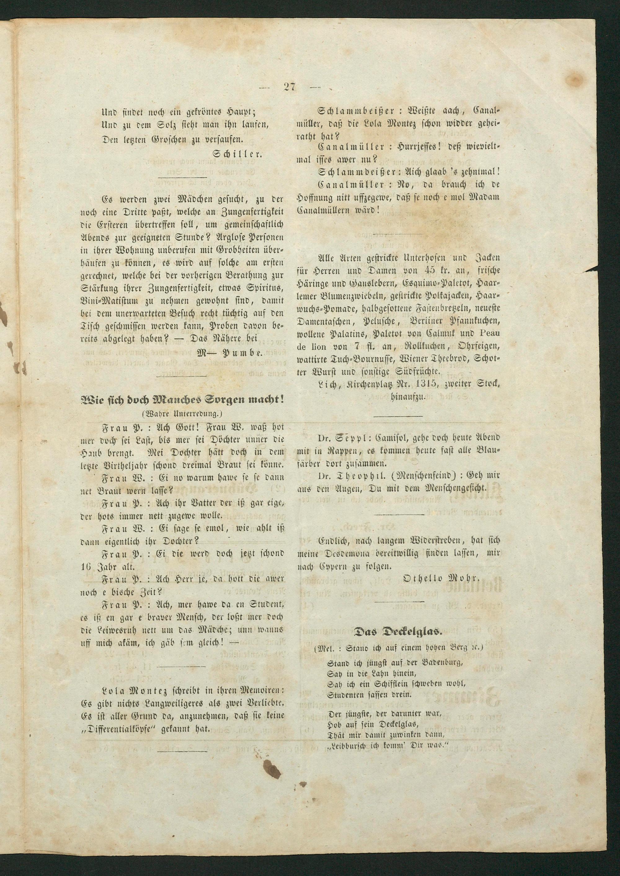 Schlammbeißer: Weißte aach, Canal— müller, daß die Lola Montez schon widder gehei— ratht hat?