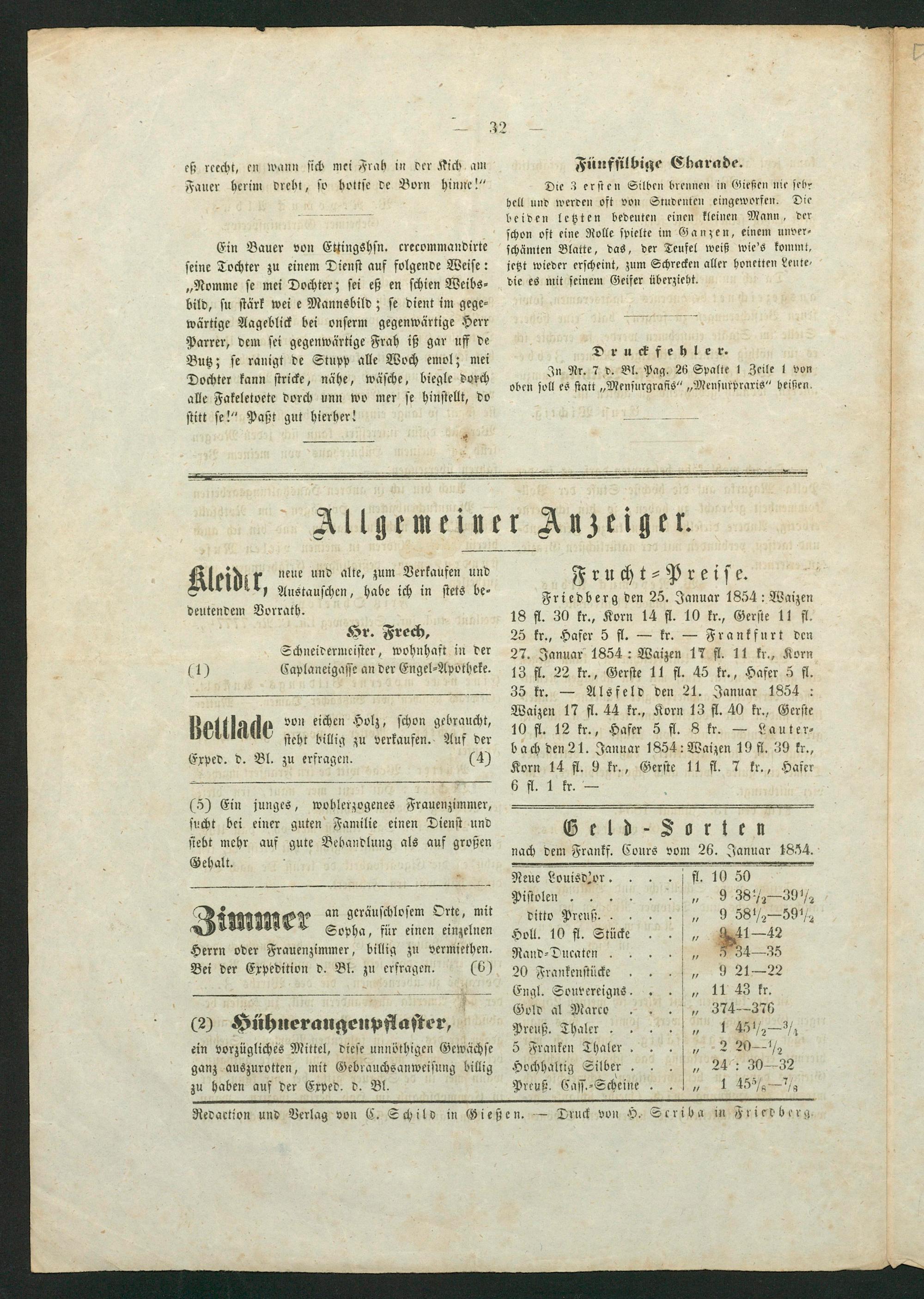 Redaction und Verlag von C. Schild in Gießen.— Druck von H. Scriba in Friedberg