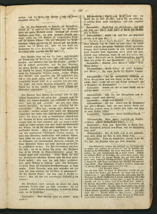 Schlammbeißer⸗ Schtill unn schtör' mich nitt! Ich schreib ewe an Lord Russel, daß iß der, der erklärt hat, 's russ'sche Reich müsse unbeschädigt unn aach ungedeilt bleiwe!