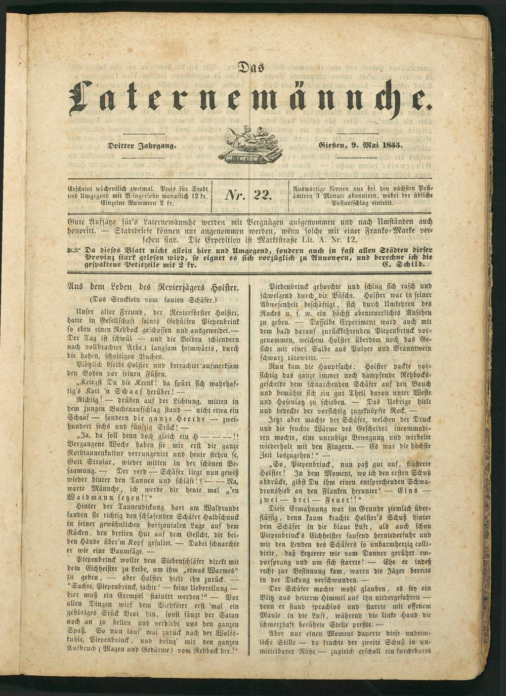 gespaltene Petitzeile mit 2 kr. C. Schild.