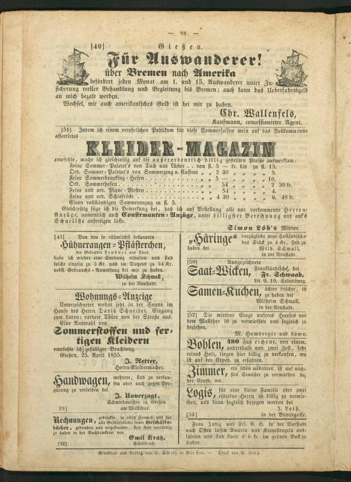 über Bremen nach Amerika„ 2. 2 befördert jeden Monat am 1. und 15. Auswanderer unter Zu sicherung reeller Behandlung und Begleitung bis Bremen; auch kann das Ueberfahrtsgeld