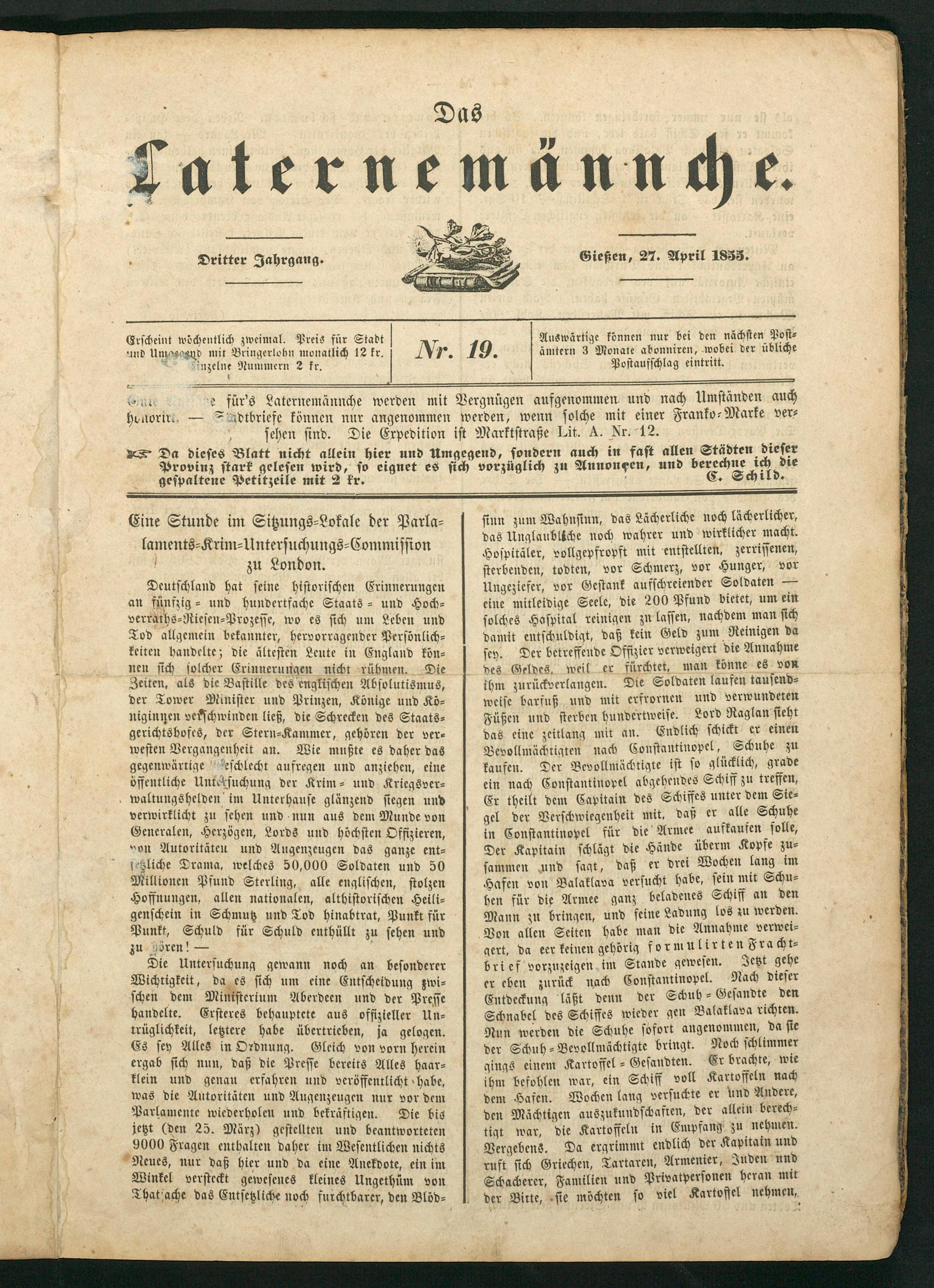 Gut e für's Laternemännche werden mit Vergnügen aufgenommen und nach 3 auch honorirt.— Badtbriefe können nur angenommen werden, wenn solche mit einer Franko-Marke ver⸗