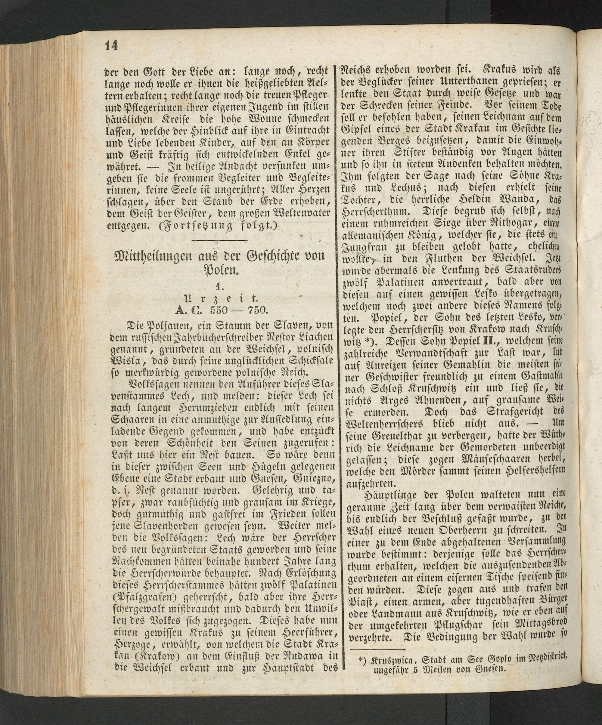 *) Kruszwica, Stadt am See Goplo im Netzdistricl, ungefähr 5 Meilen von Gnesen.