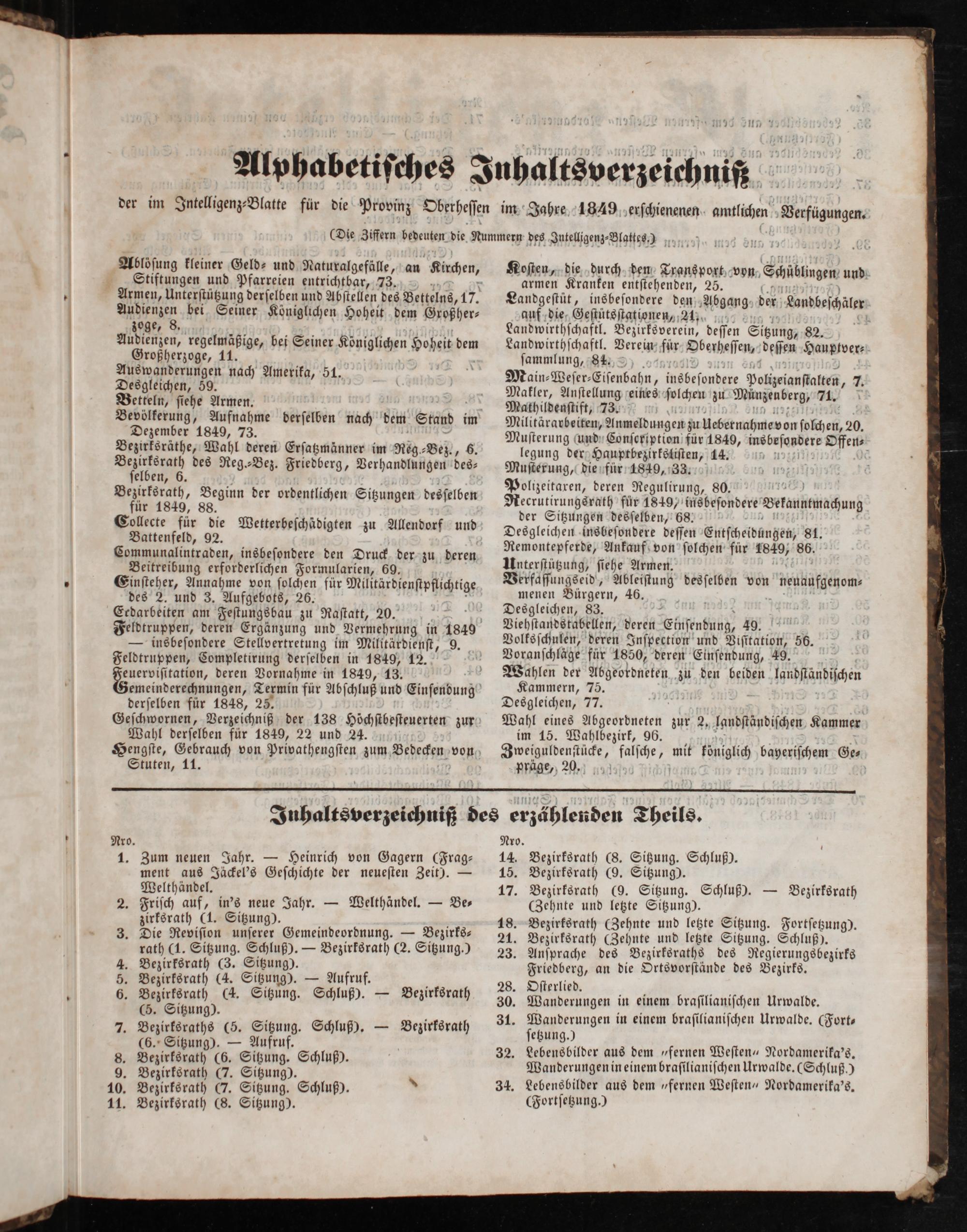 der im Intelligenz⸗Blatte für die Provinz Oberheſſen im Jahre 1849 erſchienenen amtlichen Verfügungen. (Die Ziffern bedeuten die Nummern des Intelligenz-Blattes.)