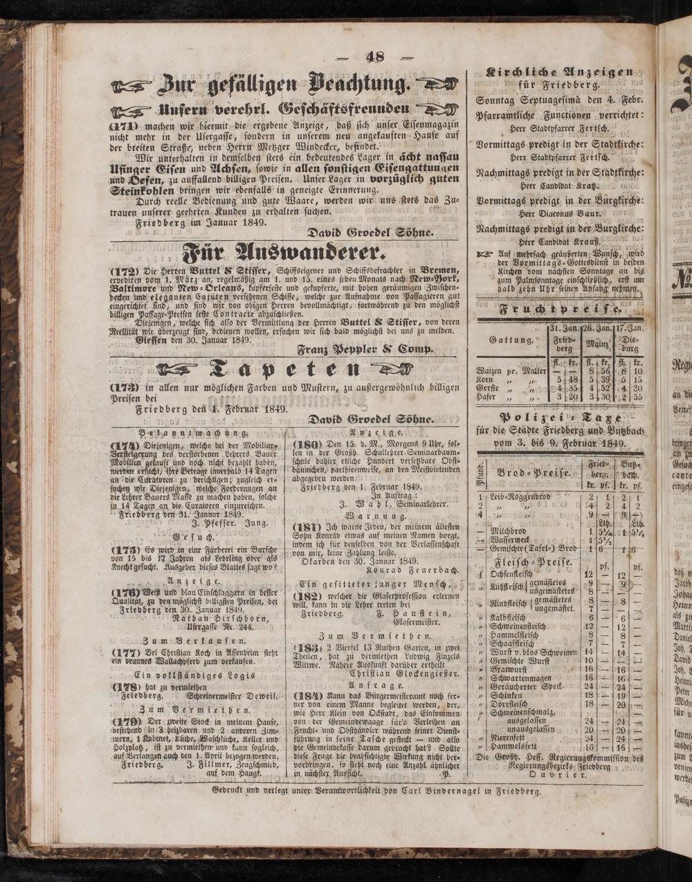 Friedberg den 1. Februar 1849.