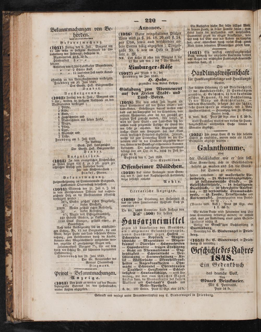 Gedruckt und verlegt unter Verantwortlichkeit von C. Bindernagel in Friedberg.