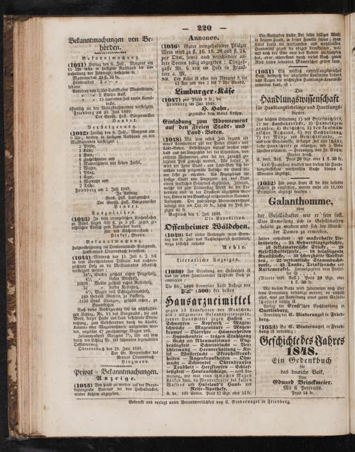 12 Uhr und von 2 bis 7 Uhr Abends. Limburger⸗Käſe (404 per Pfund 9 kr, bei Friedberg im Juli 1849.