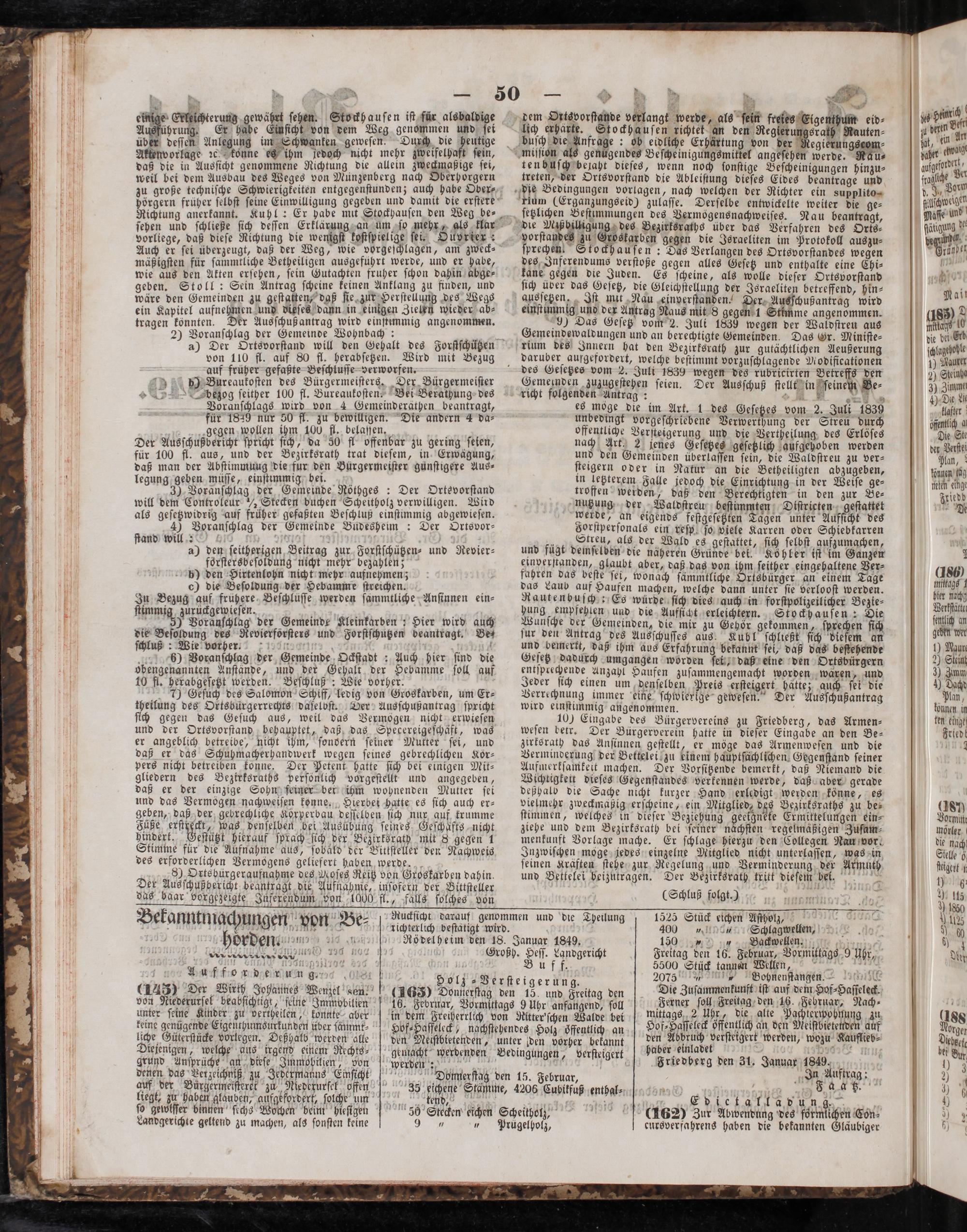 5500 Stück tannen Wellen, 9 2075„ Bobhnenſtang en. Die Zuſammenkunft iſt auf dem Hof⸗Haſſeleck. Ferner ſoll Freitag den 16. Februar, Nach⸗ mittags 2 Uhr, die alte Pachterwohnung zu Hof⸗Haſſeleck öffentlich an den Meiſtbietenden auf den Abbruch verſteigert werden, wozu Kauflieb⸗ haber einladet 90 Friedberg den 31. Januar 1849. In Auftrag: f r Ede t ta Nn. r (162) Zur Abwendung des föhnen Con⸗ cursverfahrens haben die bekannten Gläubiger