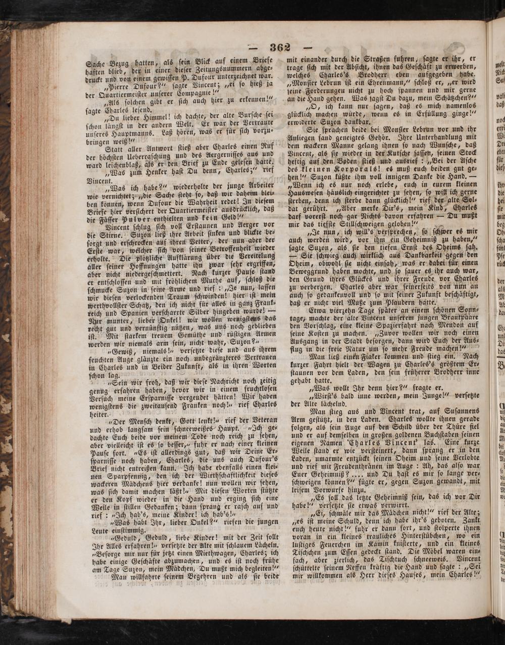 mit einander durch die Straßen fuhren, ſagte er ihr, er trage ſich mit der Abſicht, ihnen das Geſchäft zu erwerben, welches Charles's Brodherr eben aufgegeben habe. „Monſier Lebrun iſt ein Ehrenmann,“ ſchloß er,„er wird ſeine Forderungen nicht zu hoch ſpannen und mir gerne
