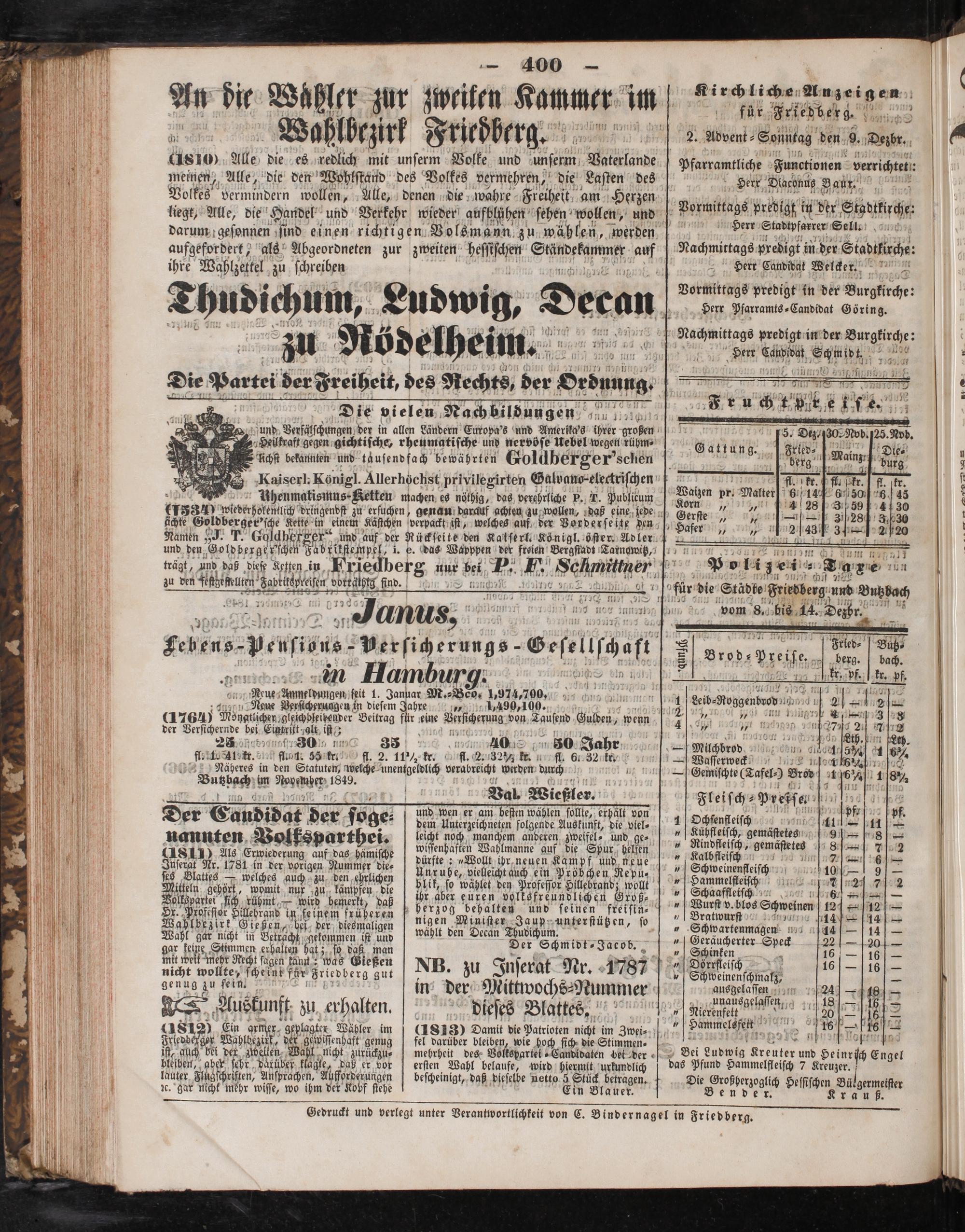 Gedruckt und verlegt unter Verantwortlichkeit von C. Bindernagel in Friedberg.