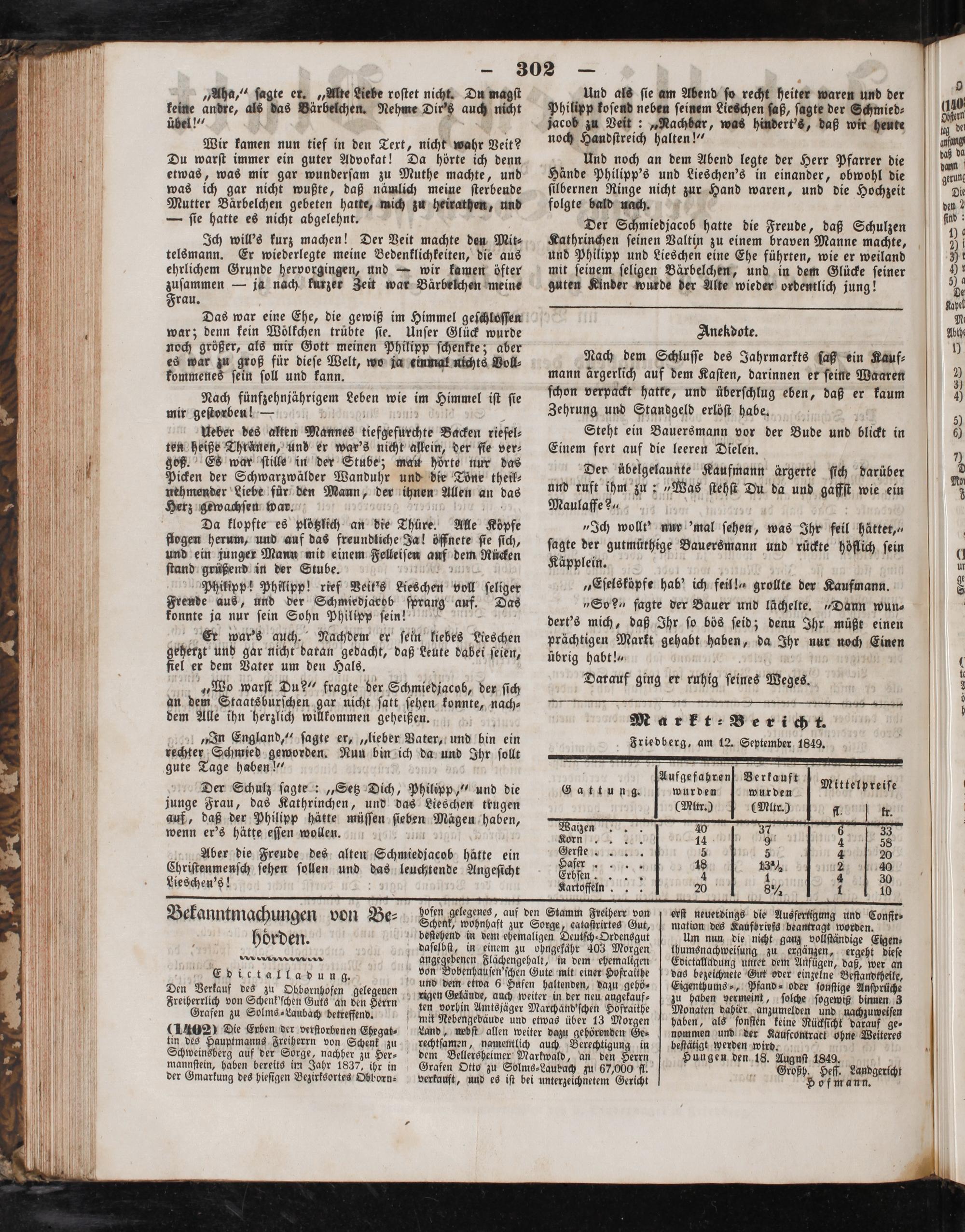 Markt⸗ Bericht. Friedberg, am 12. September 1849.