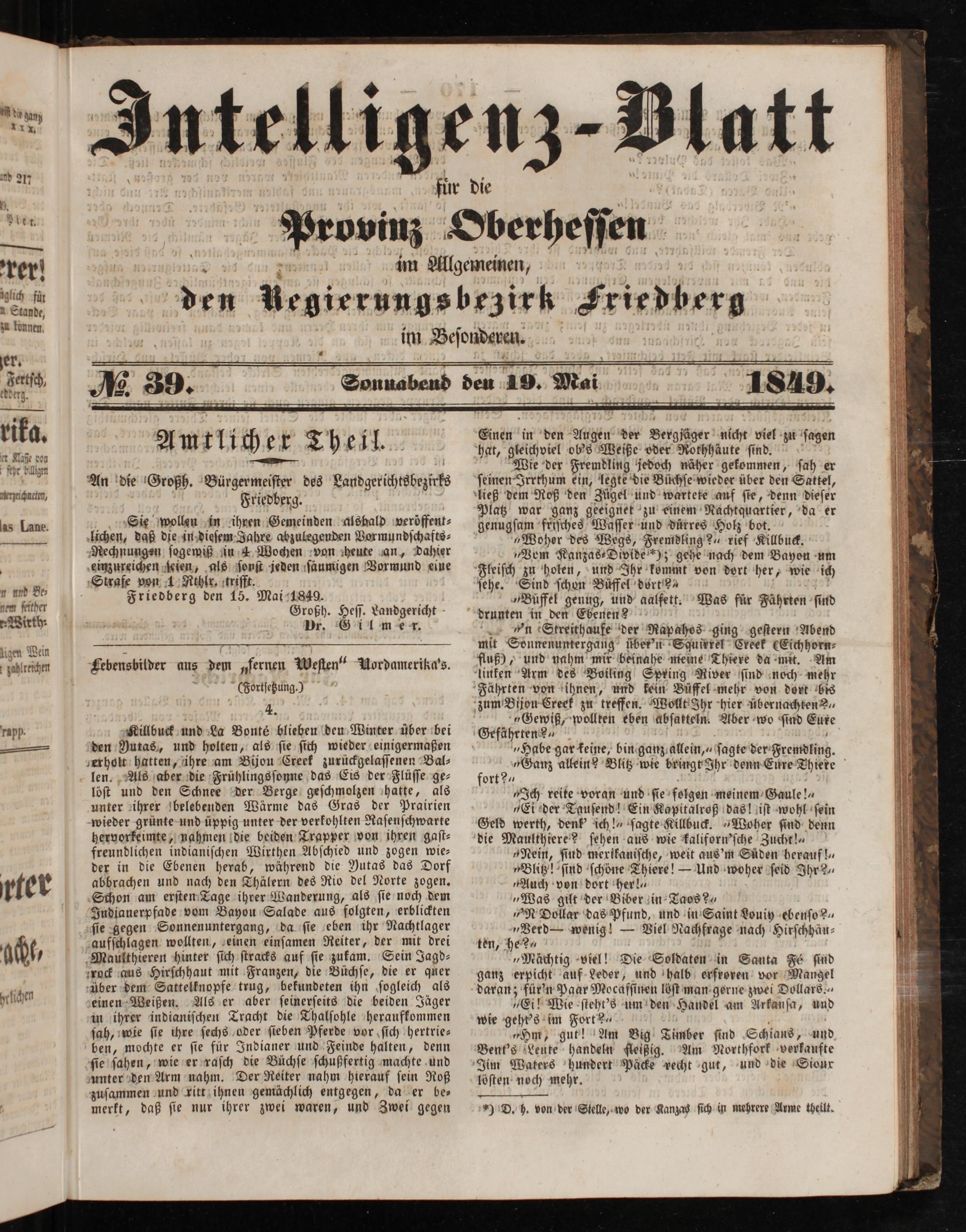 Friedberg den 15. Mai 1849. Großh. Heſſ. Landgericht Dr. Gil mer.