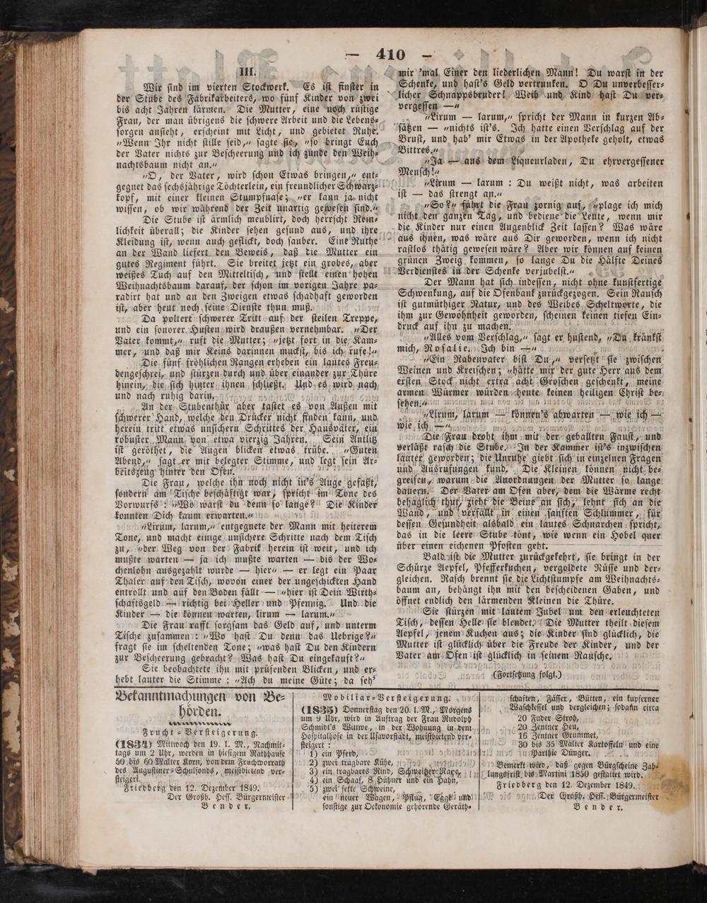 (1834) Mittwoch den 19. l. M., Nachmit⸗ tags um 2 Uhr, werden in hieſigem“ Rathhauſe 50 bis 60 Malter Korn, von dem Fruchworrath 11 95 Auguſtiner⸗Schulfonds, meistbietend ver⸗ eigert. Friedbetg den 12. Dezember 1849. 5 Der Großh. Heſſ. Bürgermeiſter Be n de
