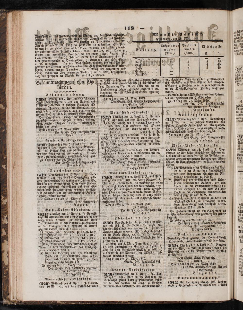 Friedberg den 21. 198 1849. Der Groß, Heſſ. Sertions Ingenieur ber Section Friedberg Hochgeſand⸗. Main ⸗Weſer⸗Eiſenbahn. (320) Mittwoch den 4. April l. J. Vormit⸗