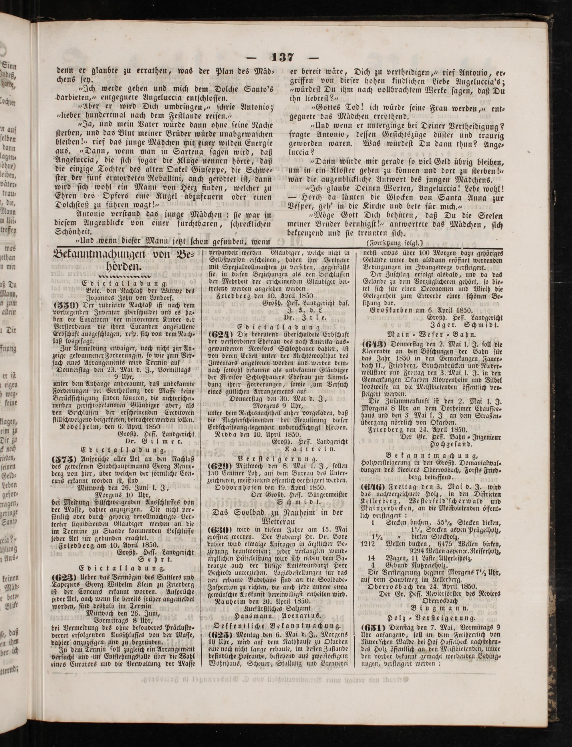 Erbſchaftsangelegenheit unberückſichtigt bleiben. Nidda den 10. April 1850.