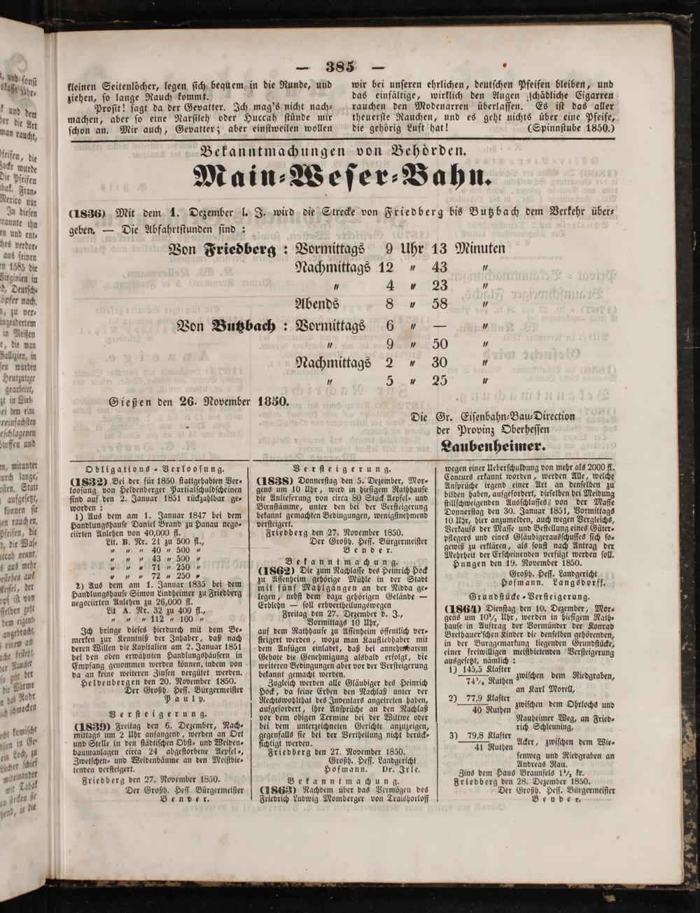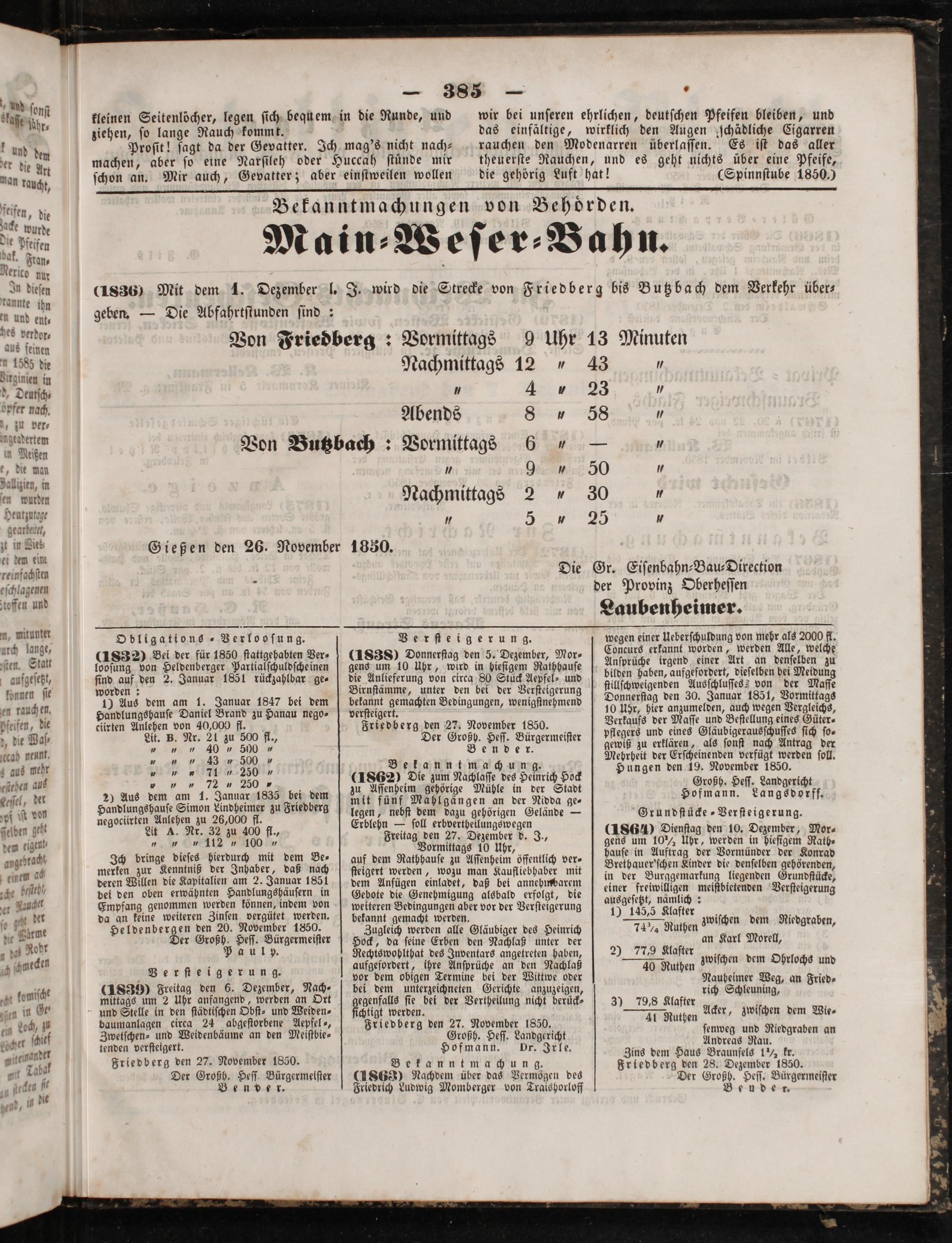 (1836) Mit dem 1. Dezember l. J. wird die Strecke von Friedberg bis Butzbach dem Verkehr über—