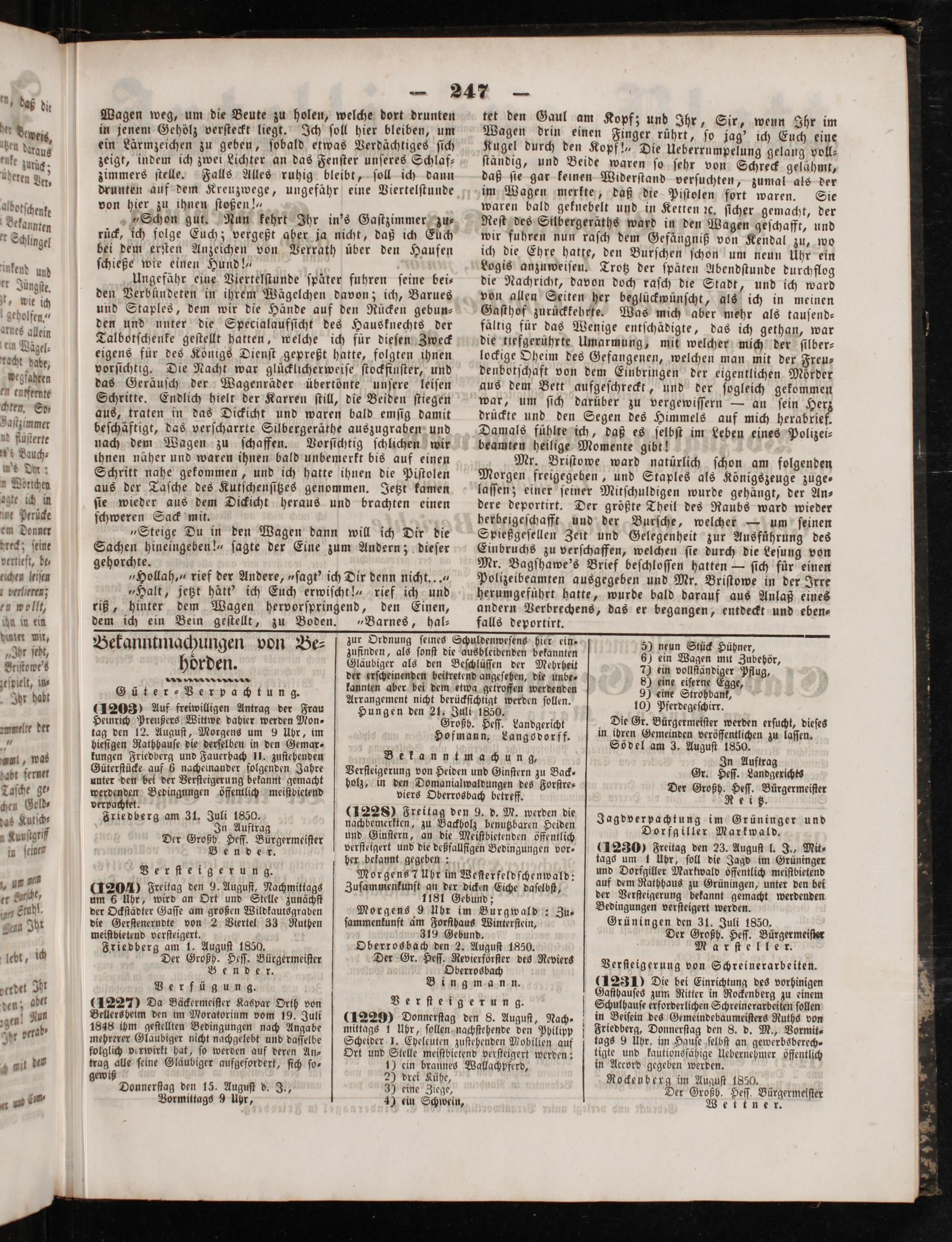 verpachtet. f Friedberg am 31. Juli 1850. In Auftrag Der Großh. Heſſ. Bürgermeiſter Bender.