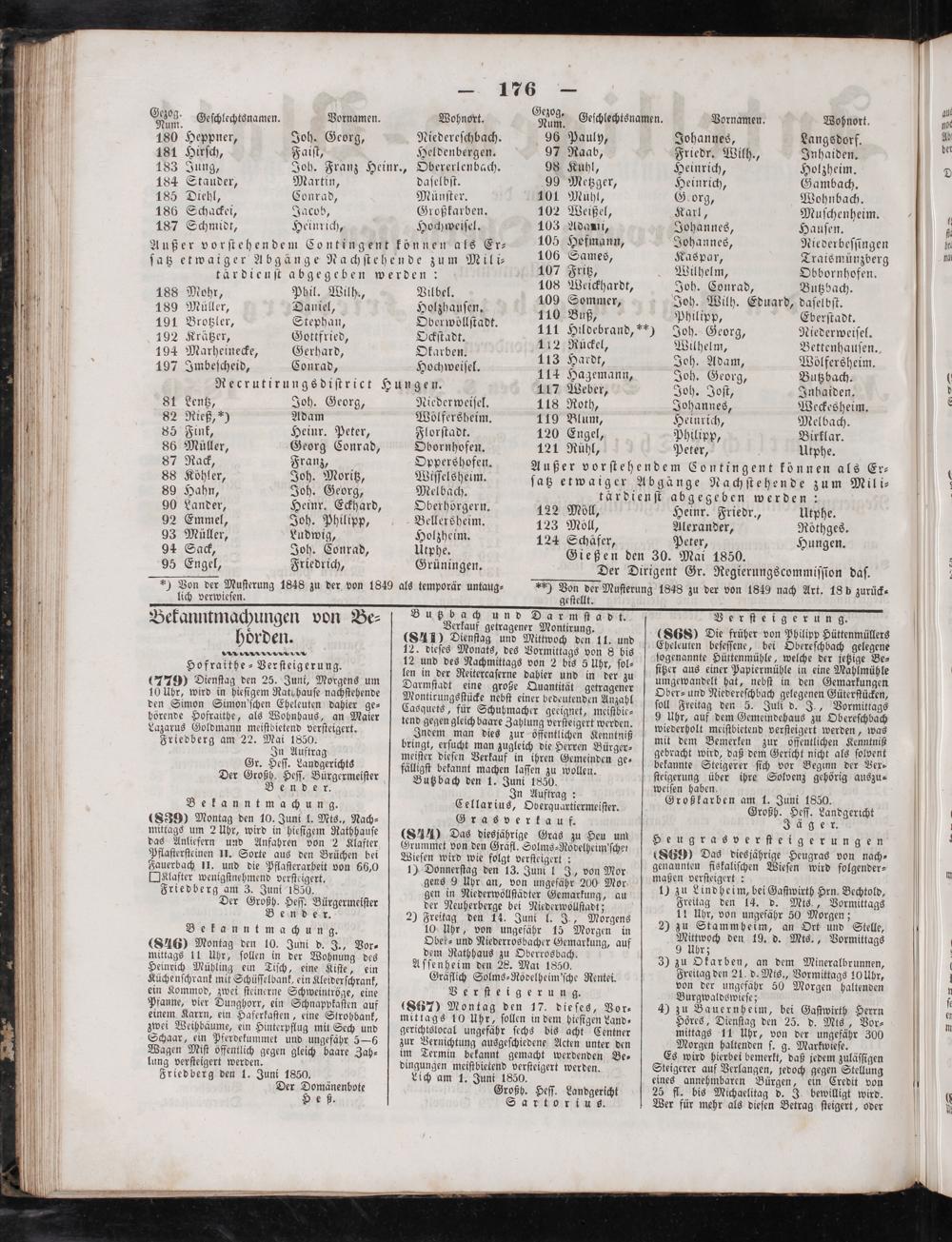 Wohnort. A Geſchlechtsnamen. Vornamen. Wohnort. Niedereſchbach. 96 Pauly, Johannes, Langsdorf. Heldenbergen. 97 Raab, Friedr. Wilh., Inhaiden. Obererlenbach. 98 Kuhl, Heinrich, Holzheim. daſelbſt. 99 Metzger, Heinrich, Gambach. Münſter. 101 Mühl, Georg, Wohnbach. Großkarben. 102 Weißel, Karl, Muſchenheim. Hochweiſel. 103 Adami, Johannes, Hauſen.