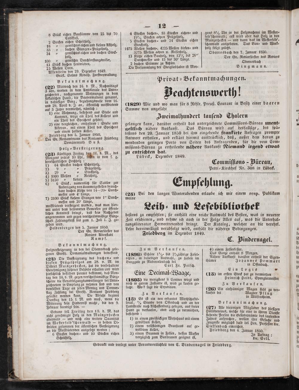 Gedruckt und verlegt unter Verantwortlichkeit von C. Bindernagel in Friedberg.