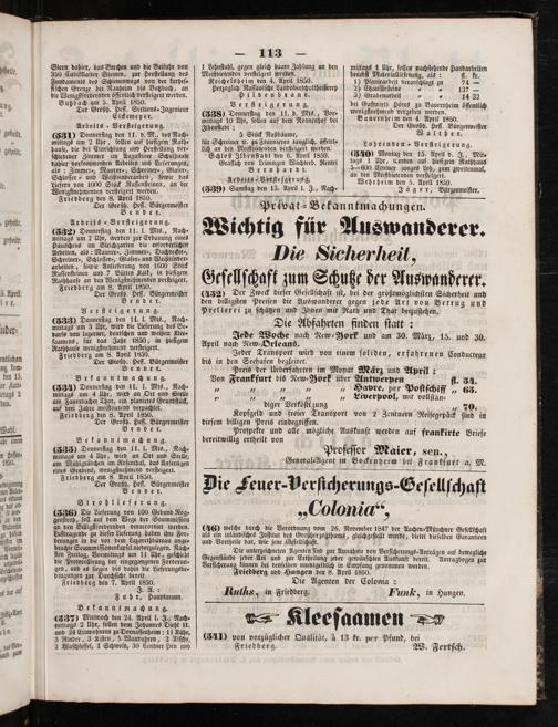 (432) Der Zweck dieſer Geſellſchaft iſt, bei der größtmöglichſten Sicherheit und den billigſten Preiſen die Auswanderer gegen jede Art von Betrug und Prellexei zu ſchützen und Ihnen mit Rath und That beizuſtehen.