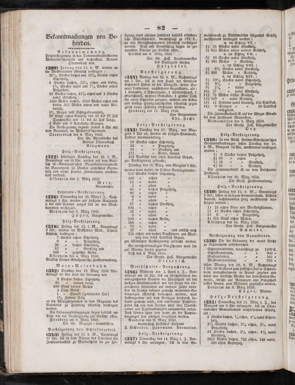366„ eichen 1 70„ nadel 1 . aſpen„und endlich noch 255 eichen und buchen Bauſtämme und Werk— holz von 9381 Cubikfuß Gehalt, zur öffentlichen Verſteigerung gebracht werden. Bei vorſchriftsmäßigen Bürgſcheinen wird bis auf Martini Credit gegeben. Lich den 4 März 1850. Der Großh. Heſſ. Bürgermeiſter Di eee