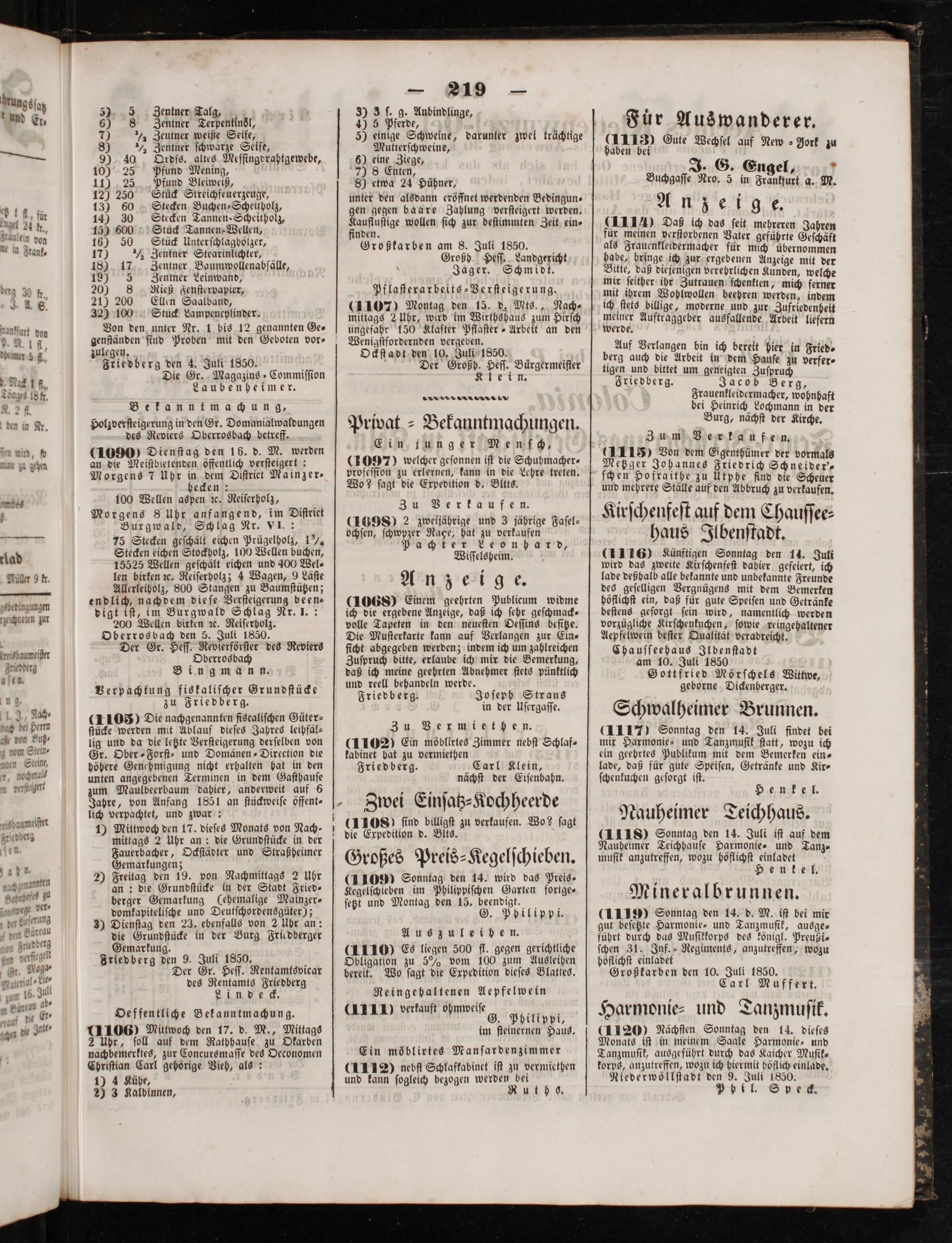 Friedberg den 4. Juli 1850.