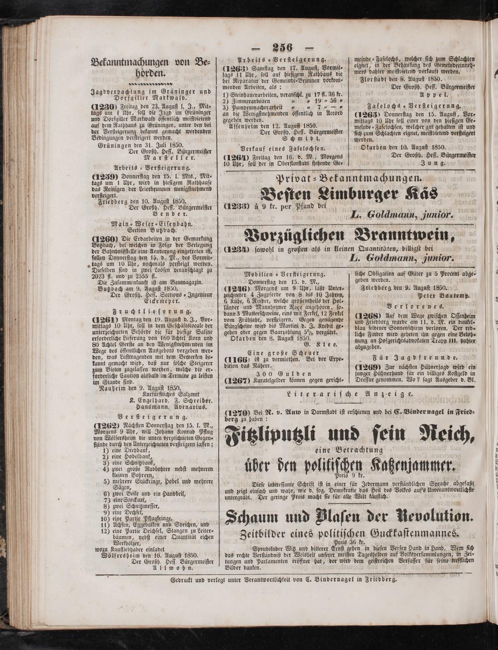 Gedruckt und verlegt unter Verantwortlichkeit von C. Bindernagel in Friedberg.