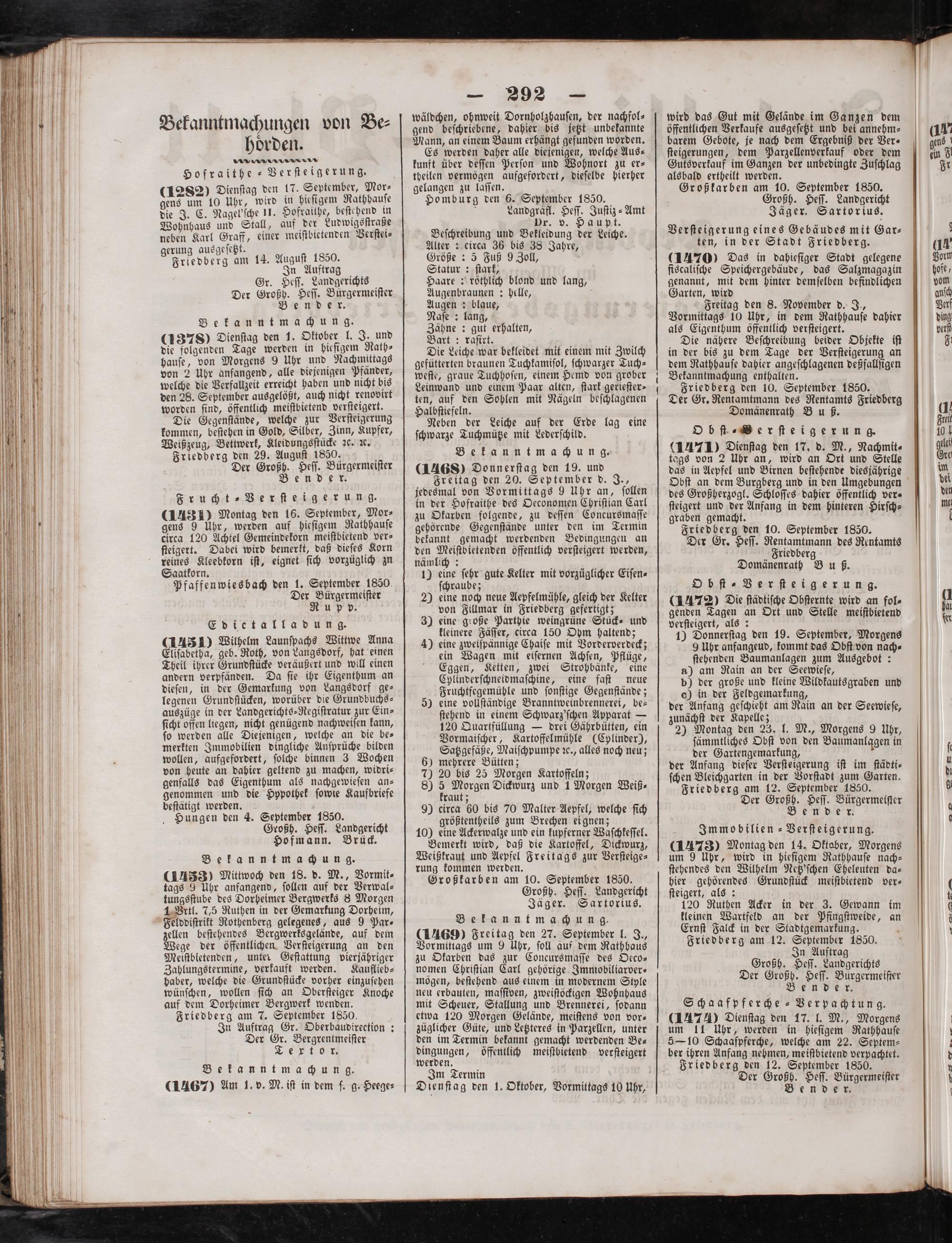 erung ausgeſetzt. 5 5 Frievberg am 14. Auguſt 1850. In Auftrag Gr. Heſſ. Landgerichts Der Großh. Heſſ. Bürgermeiſter Bender.