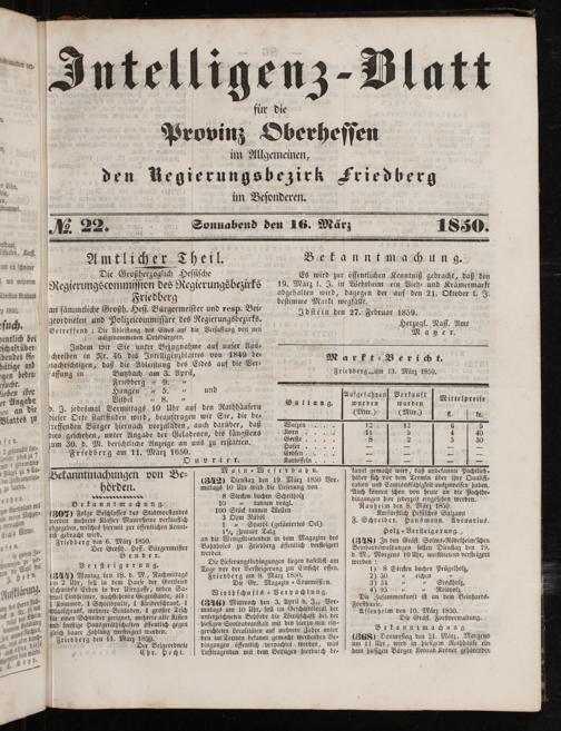 niß gebracht wird. Friedberg den 6. März 1850.