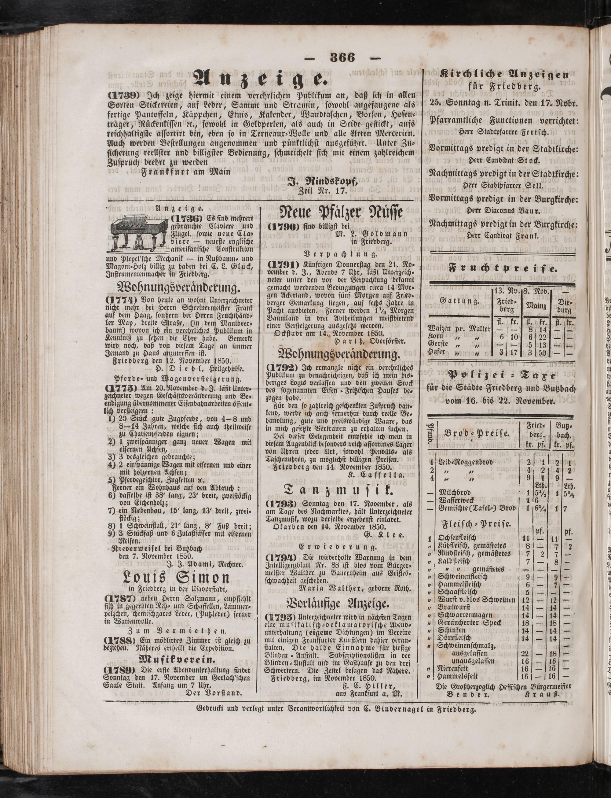 Gedruckt und verlegt unter Verantwortlichkeit von C. Bindernagel in Friedberg.