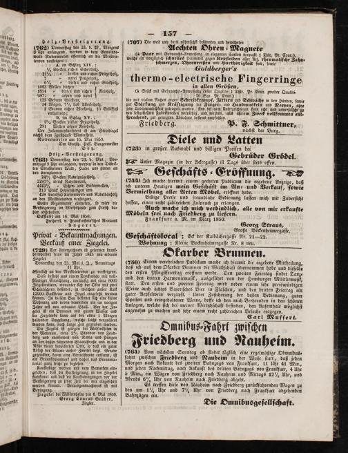 (744%) Ich mache hiermit einem geehrten Publicum die ergebene Anzeige, daß ich unterm Heutigen mein Geſchäft im An⸗ und Verkauf, ſowie Vermiethung aller Arten Möbel, eröffnet habe. Billige Preiſe und freundliche Bedienung laſſen mich mit Zuverſicht hoffen, 8 982 8 5 1 8 5 5 1 5 uch mache ich mich verbindlich, alle von mir erk Möbeln frei nach Friedberg zu liefern. 5 1 Frankfurt a. M. im März 1850.
