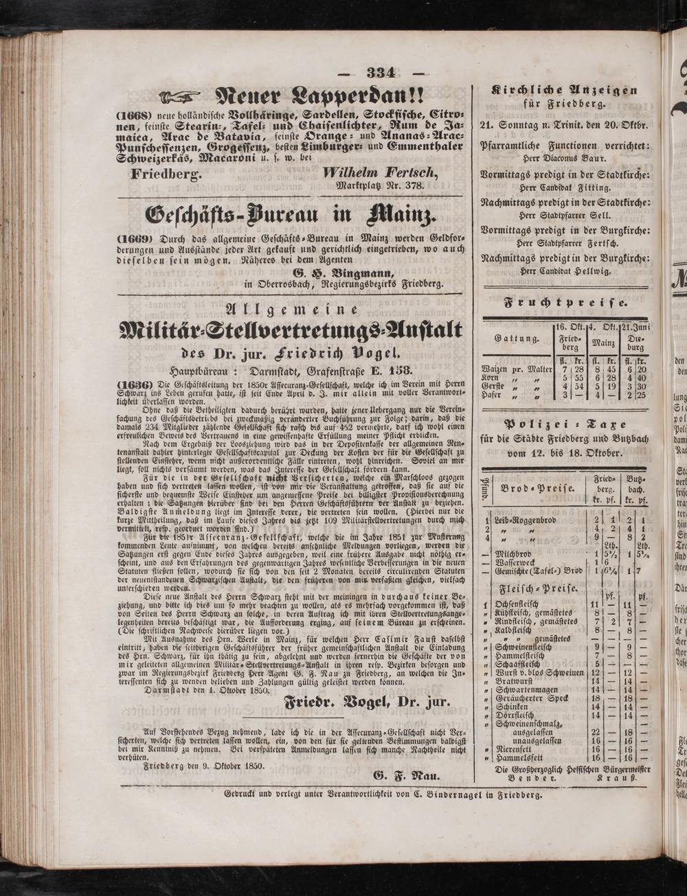 Gedruckt und verlegt unter Verantwortlichkeit von C. Bindernagel in Friedberg.