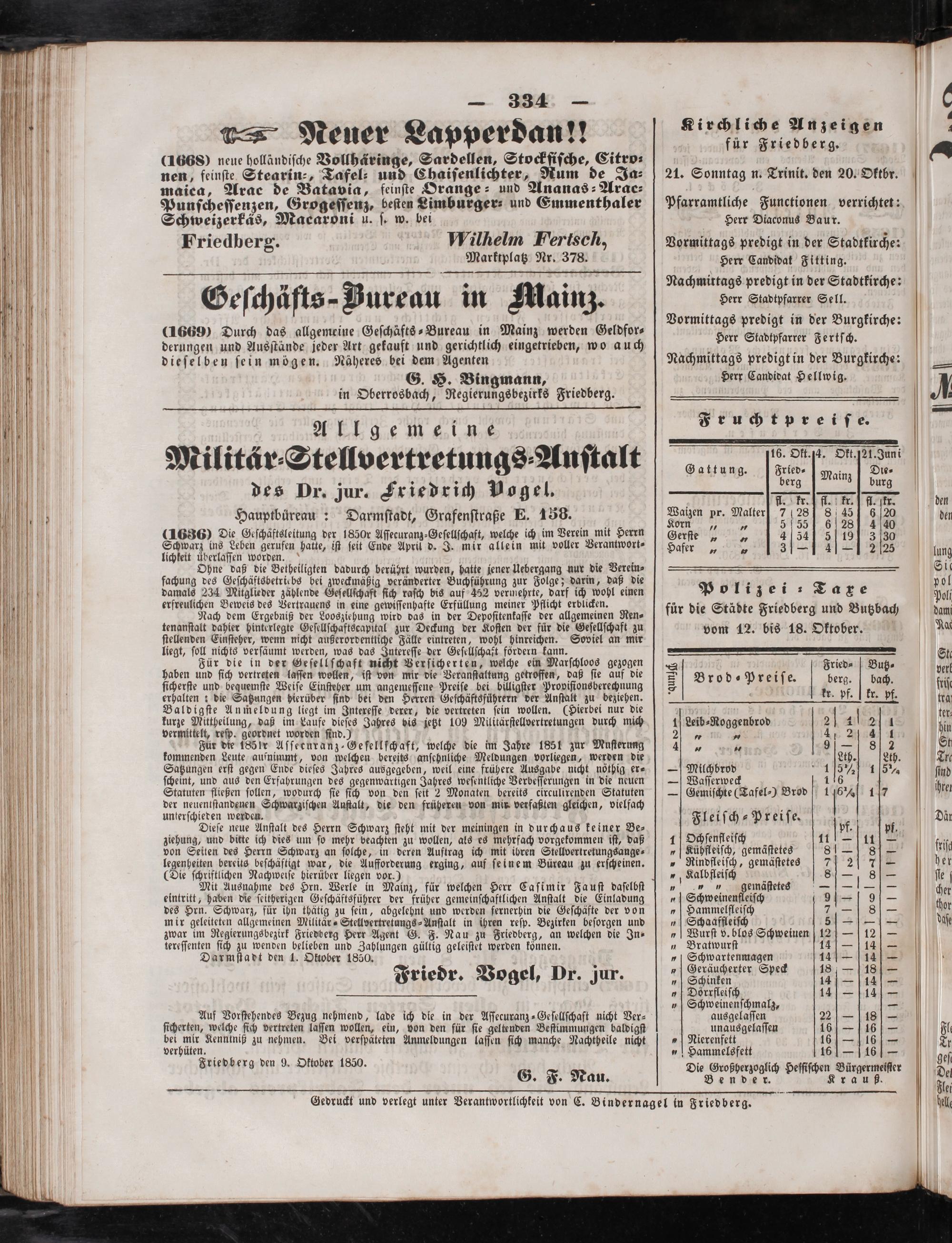 Friedberg den 9. Oktober 1850. G. F. Nau.