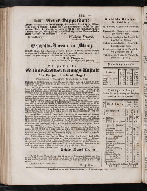 Darmſtadt den 1. Oktober 1850. f. Friedr. Vogel, Dr. jur.