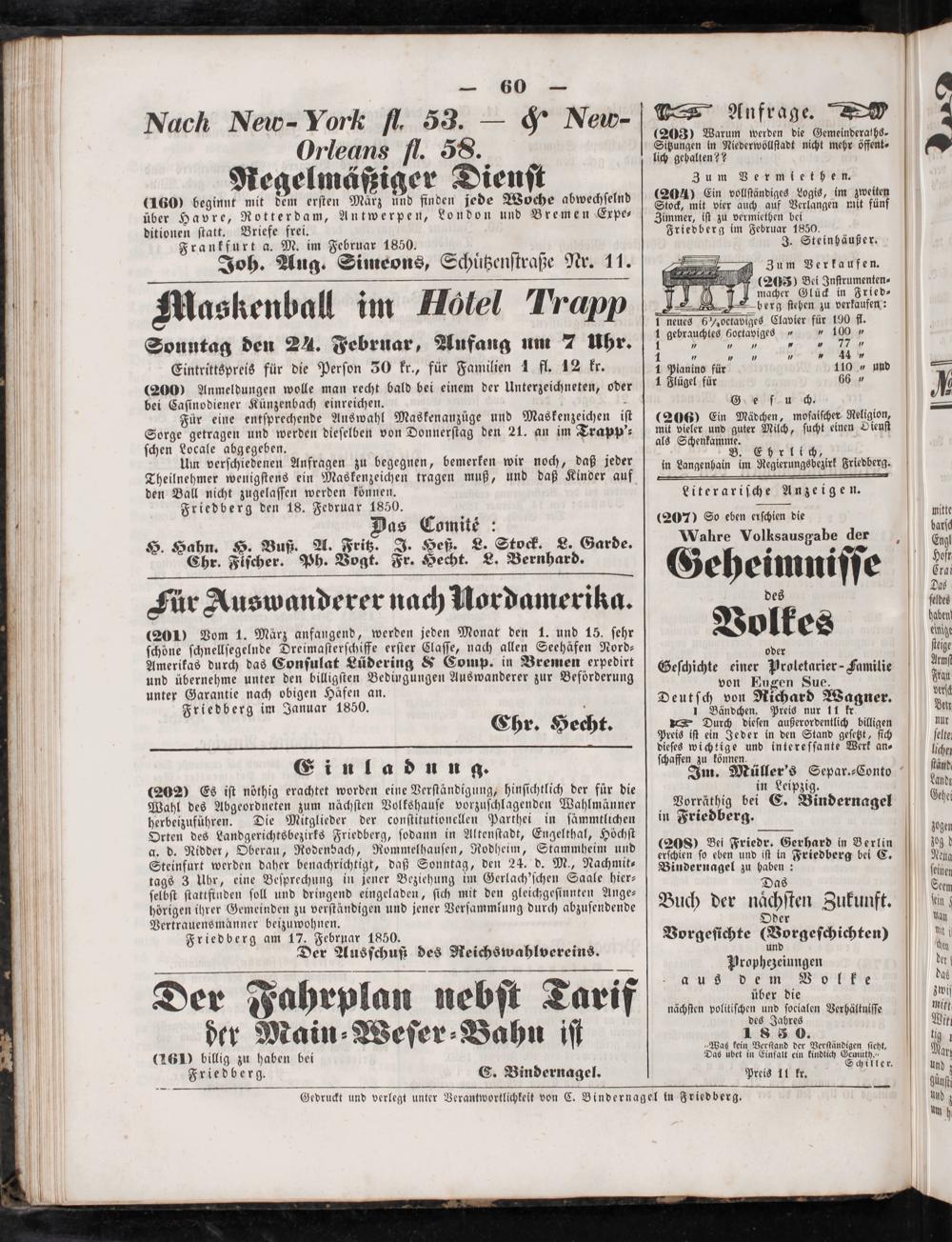 Gedruckt und verlegt unter Verantwortlichkeit von C. Bindernagel in Friedberg.