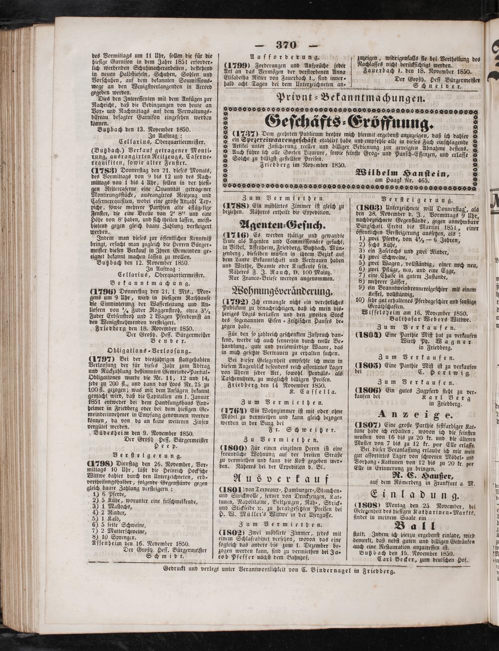 Gedruckt und verlegt unter Verantwortlichkeit von C. Bindernagel in Friedberg