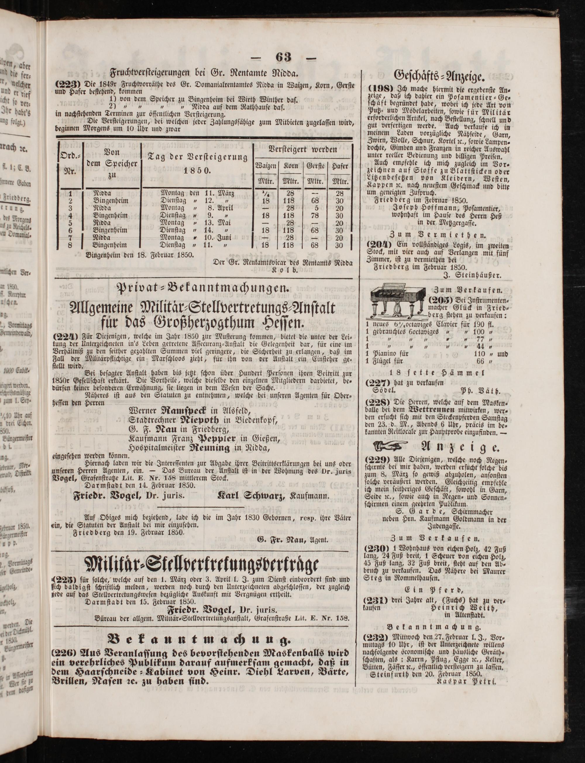 Friedberg den 19. Februar 1850. G. Fr. Nau, Agent.