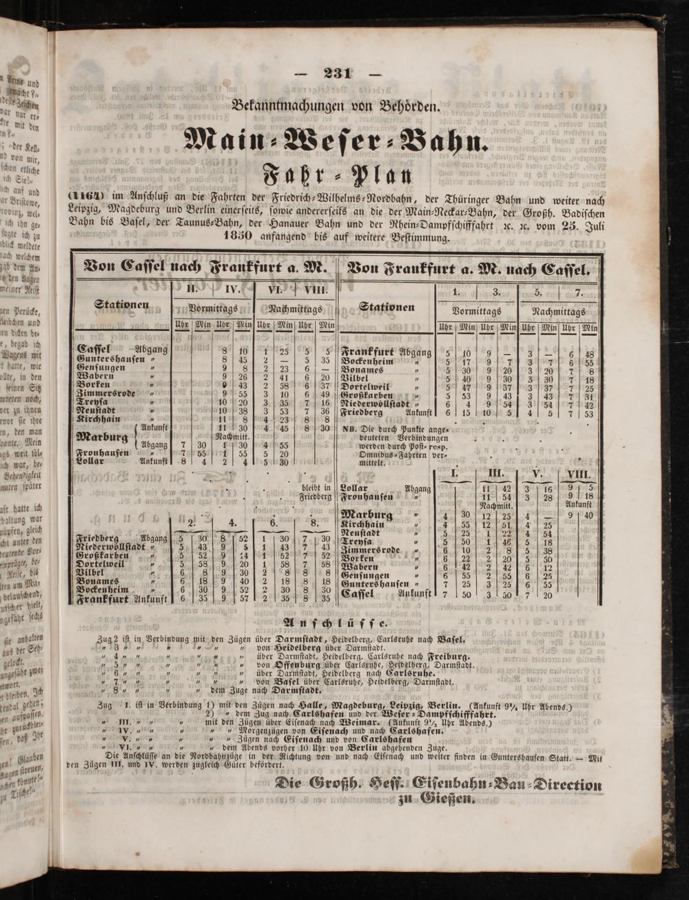 f und 164) im Anſchluß an die Fahrten der Friedrich⸗Wilhelms-Nordbahn, der Thüringer Bahn und weiter nach Otkiſtowe—* 5*.... din wel Leipzig, Magdeburg und Berlin einerſeits, ſowie andererſeiks an die der Main-Neckar-Bahn, der Großh. Badiſchen e Il:..— 5—