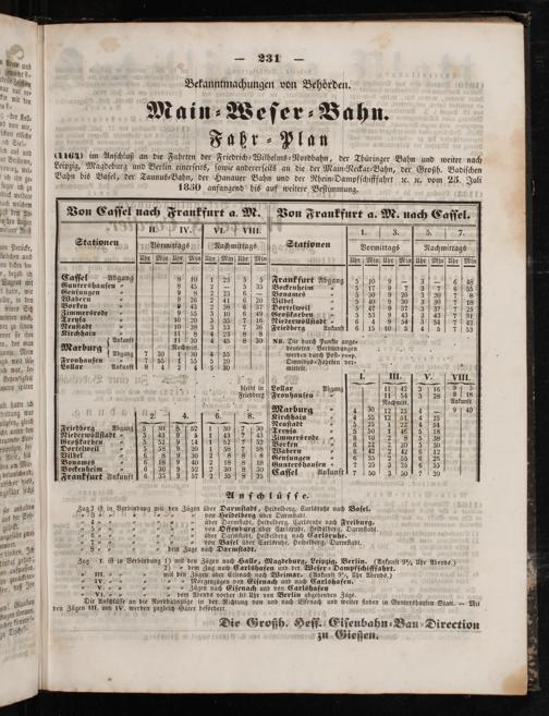 5 den d, Von ECaſſel nach Frankfurt a. M. Von Fraukfurt a. M. nach Caſſel.