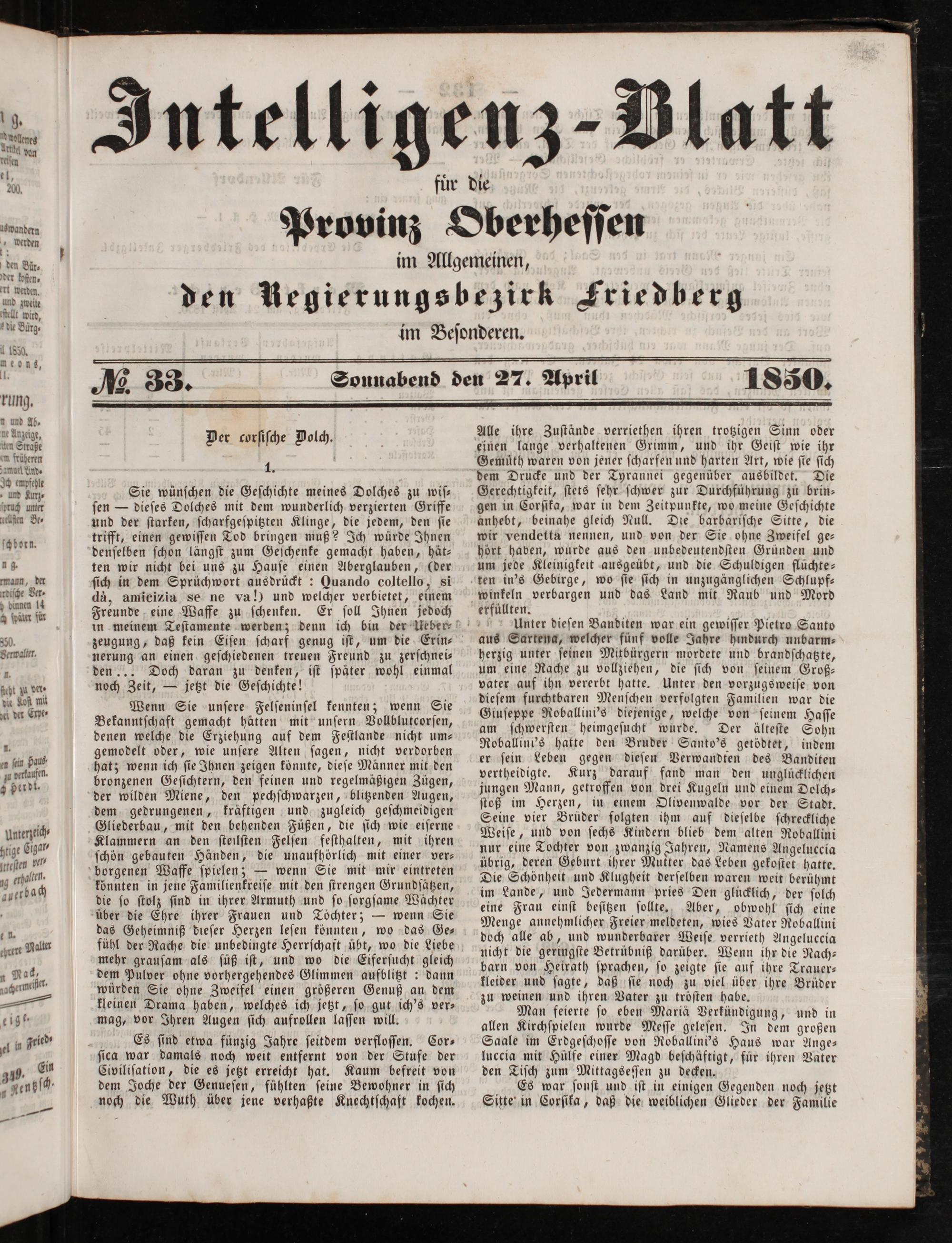Es ſind etwa fünzig Jahre ſeitdem verfloſſen. Cor— ſica war damals noch weit entfernt von der Stufe der Civiliſation, die es jetzt erreicht hat. Kaum befreit von dem Joche der Genueſen, fühlten ſeine Bewohner in ſich noch die Wuth über jene verhaßte Knechtſchaft kochen.