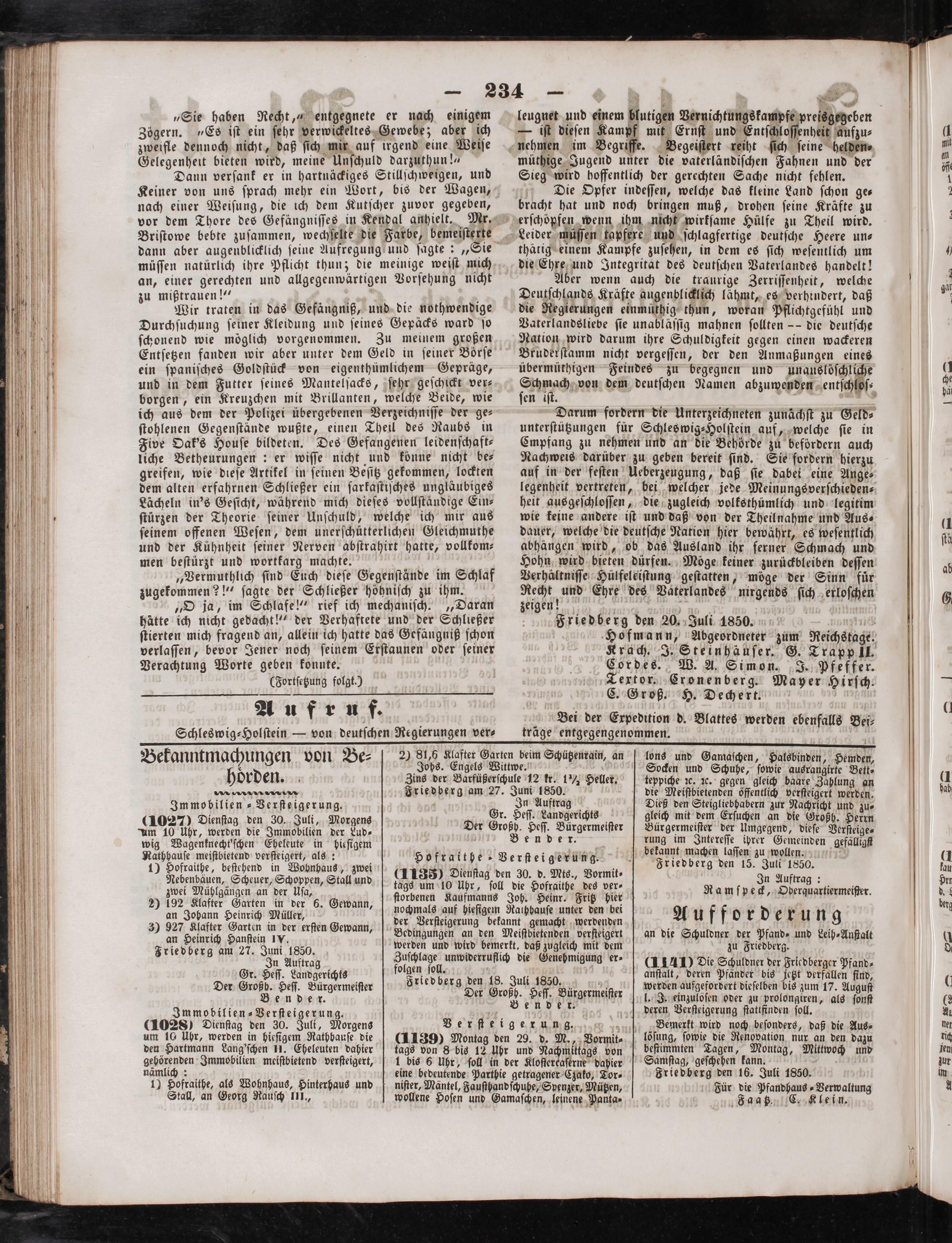 heit ausgeſchloſſen, die zugleich volksthümlich und legitim wie keine andere iſt und daß von der Theilnahme und Aus⸗ dauer, welche die deutſche Nation hier bewährt, es weſentlich abhängen wird, ob das Ausland ihr ferner Schmach und Hohn wird bieten dürfen. Möge keiner zurückbleiben deſſen Verhältniſſe Hülfeleiſtung geſtatten, möge der Sinn fuͤr l Ehre des Vaterlandes nirgends ſich erloſchen zeigen! 5 5 Friedberg den 20. Juli 1850. 1
