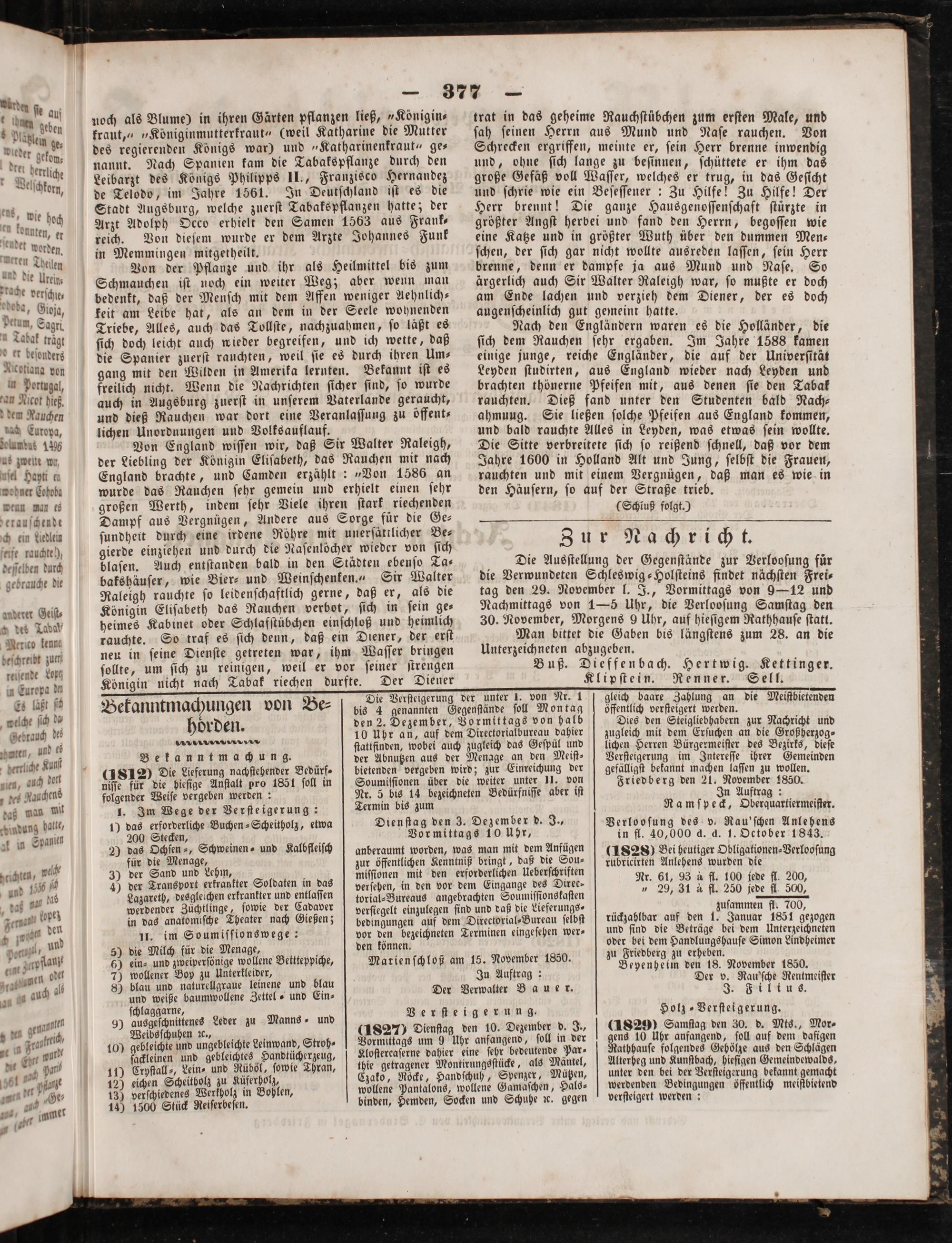 Die Ausſtellung der Gegenſtände zur Verlooſung für die Verwundeten Schleswig-Holſteins findet nächſten Frei⸗ tag den 29. November l. J., Vormittags von 9—12 und Nachmittags von 1—5 Uhr, die Verlooſung Samſtag den 30. November, Morgens 9 Uhr, auf hieſigem Rathhauſe ſtatt.