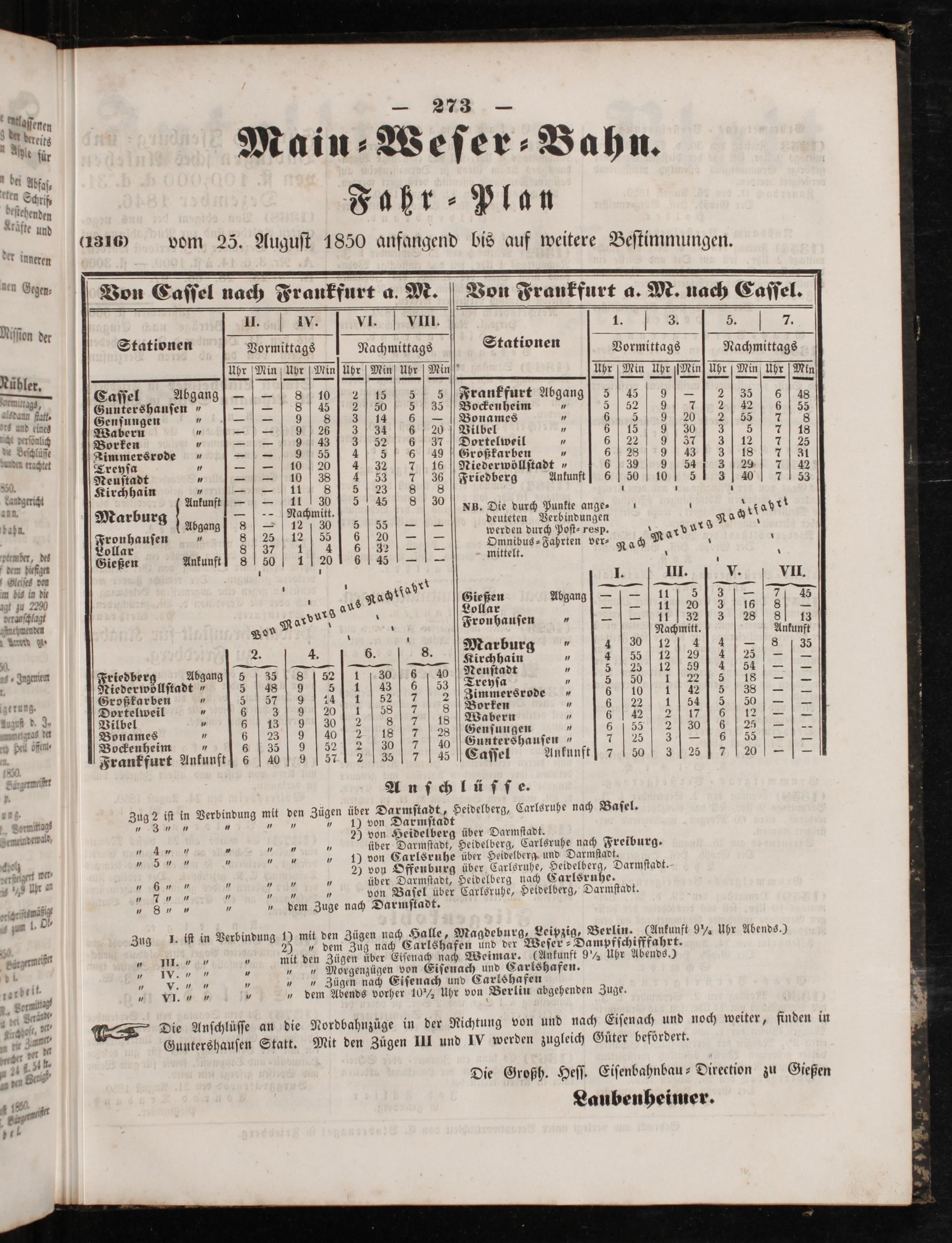 Alaſſenen 2* e Main⸗Weſer⸗Bahn. Fahr ⸗ Plan